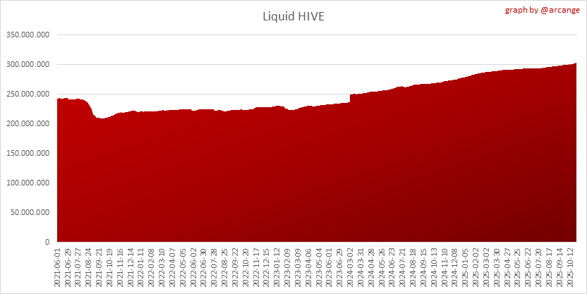 This graph shows the number of HIVE, both liquid and in savings, held by all accounts.