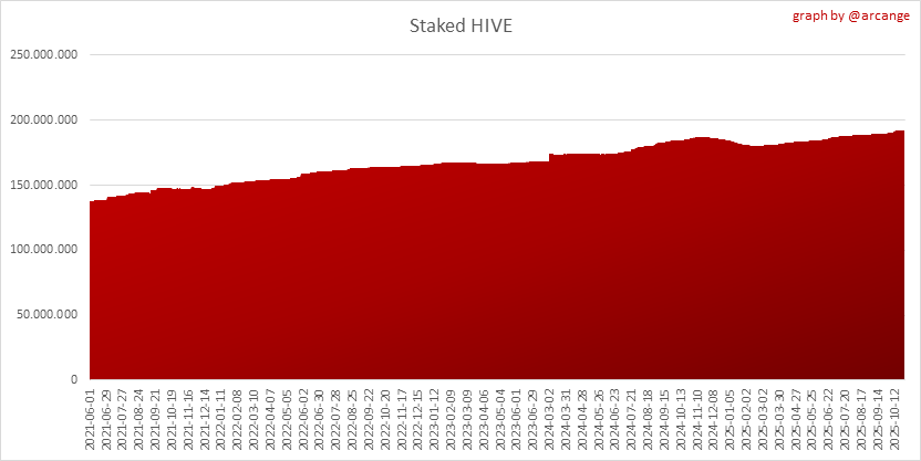 These charts show the evolution of the liquid HIVE and the staked HIVE (Hive Power).