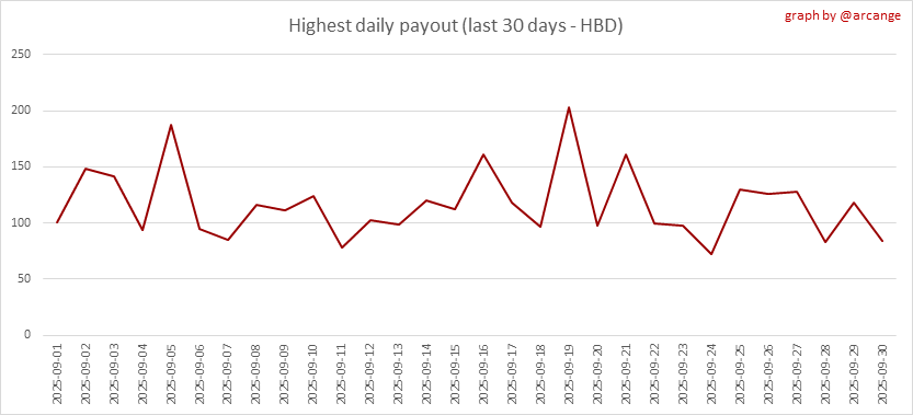 This graph shows the highest reward paid on a post (or comment) for the last 30 days.