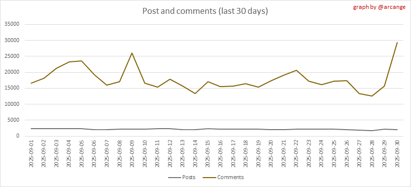 All the information presented in this report is based on the data collected from the blockchain until 2025-09-30 midnight UTC. This report aims to provide you with a clear view of what is happening on the Hive blockchain.
