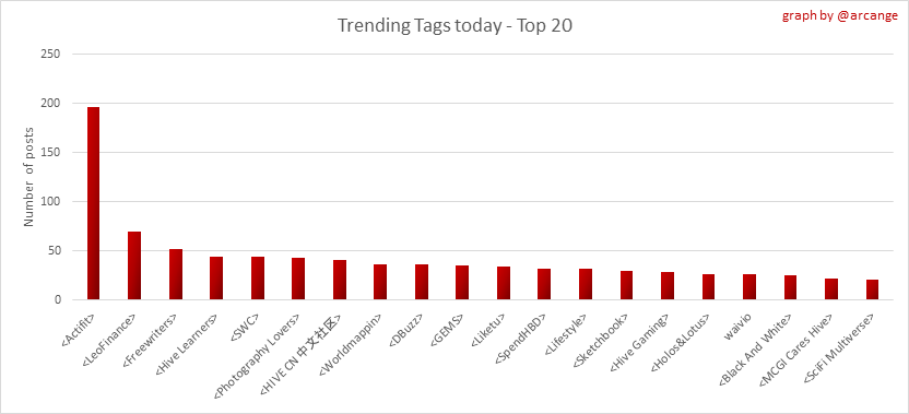 These graphs show which main tags have been the most used for publishing posts for the whole blockchain lifetime and the last day.