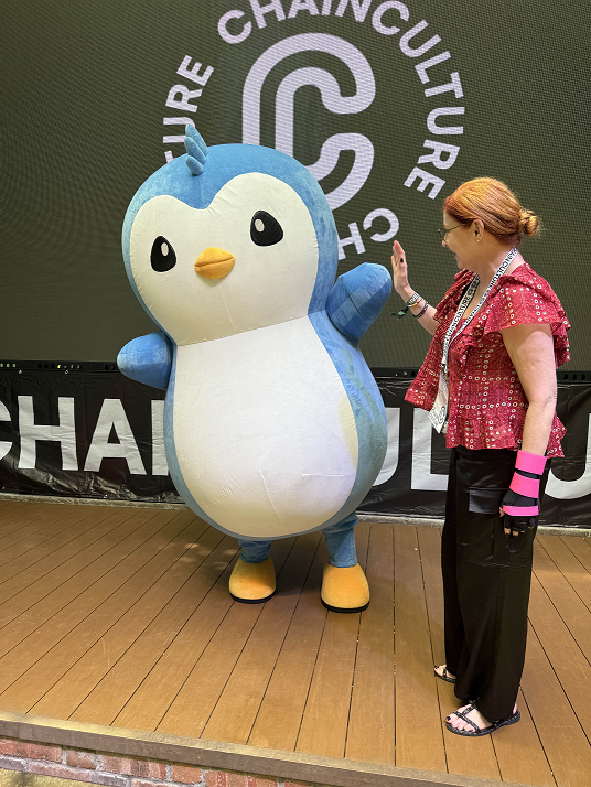 Also came one of the most unexpected and amusing moments of the day, the appearance of a life-sized Pudgy Penguin mascot! It immediately became the center of attention, with everyone rushing to take photos.
