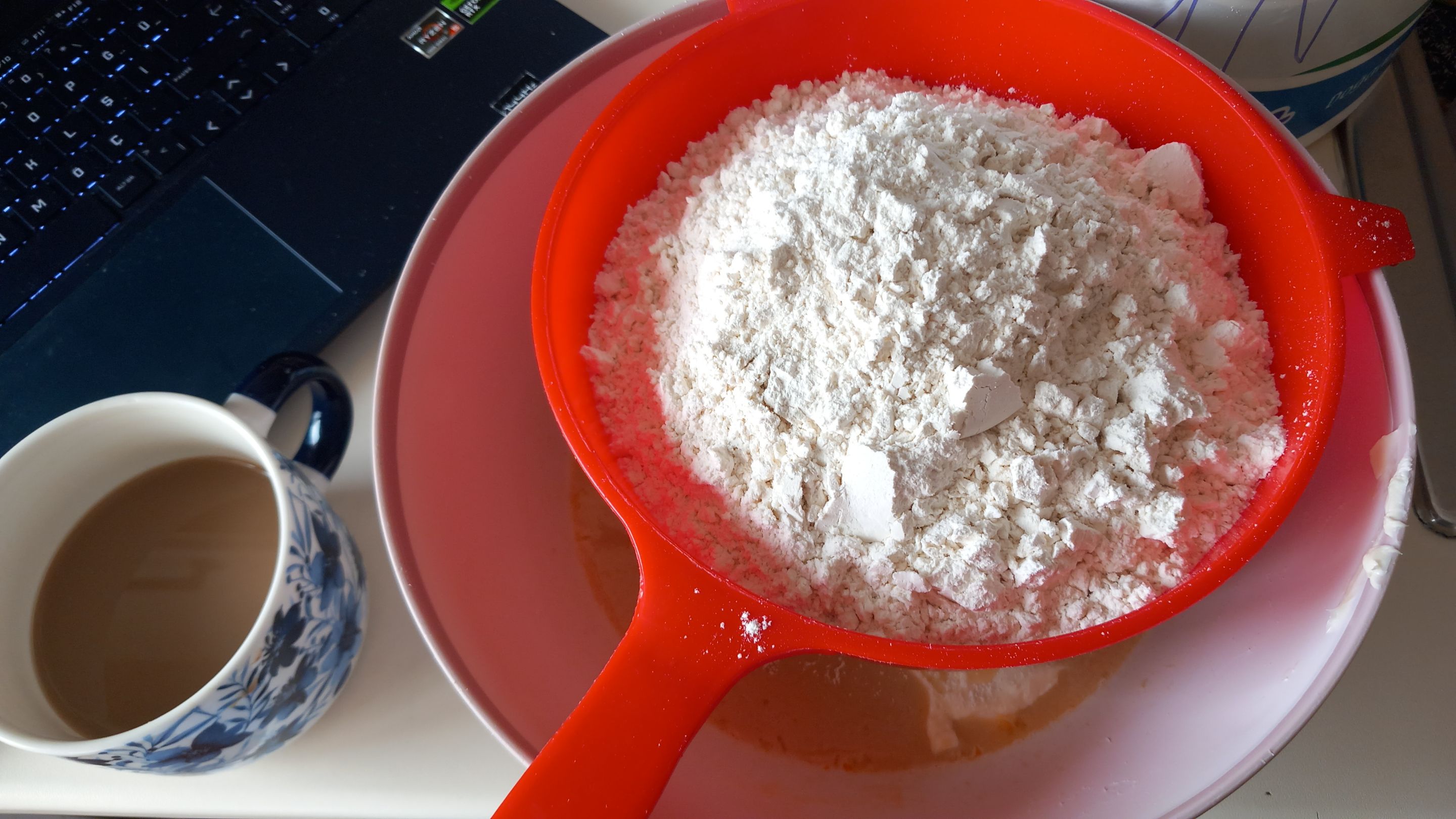 Ardından yağı elimle küçük parçalara ayırıp mayalı karışıma ekledikten sonra üzerine kullanacağım unu eledim. Özellikle tatlı ve çörekler üzerinde çalışıyorsanız daha iyi kabarmaları için unu elemenizi tekrar tavsiye ederim. Özellikle de kurabiyelerde bunun faydasını çok görüyorum.