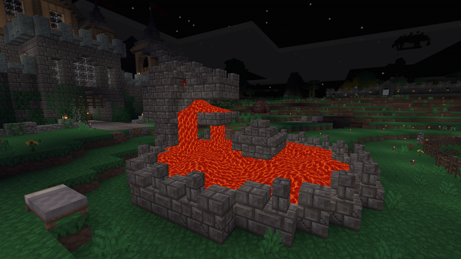 Son olarak havuzu su ile mi yoksa lava ile mi doldursam diye düşünürken bir ejderhaya lavanın daha çok yakışacağını düşündüğüm için lavaya karar verdim. Neyse ki bir yerde lava havuzu buldum ve bu konuda sorun yaşamadım. En son hâli yukarıda gördüğünüz gibi.