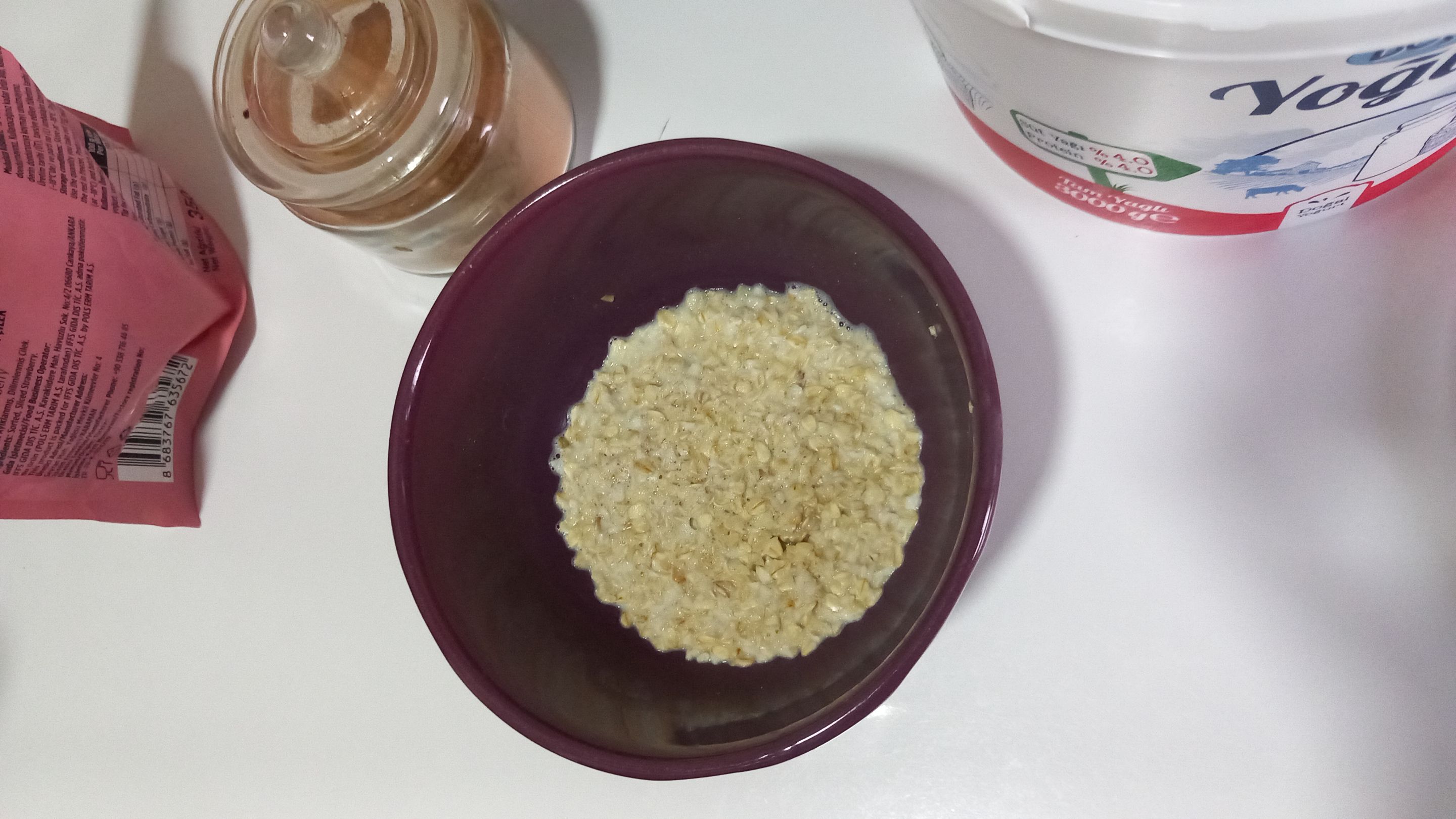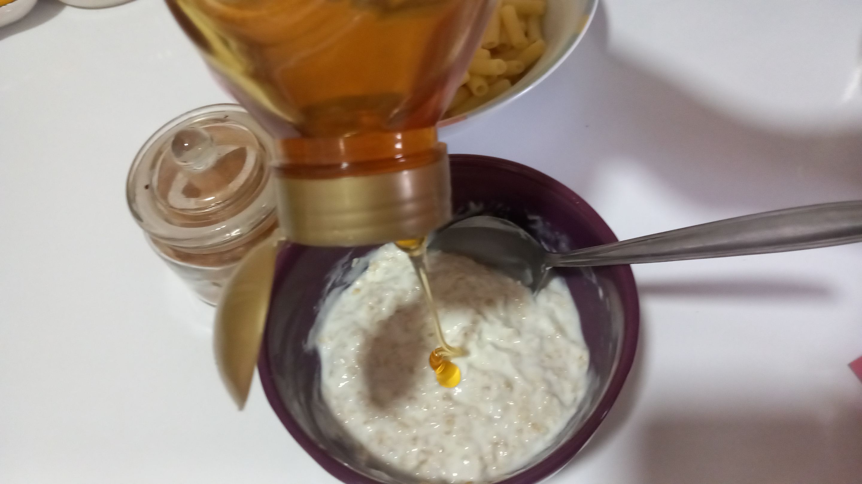 After that, I added honey by eye and gave it another stir. To be honest, unless I’m having toast, I prefer sweet breakfasts. That’s why I usually add around two teaspoons of honey instead of one. Is it the healthiest choice? Probably not. Is it tasty? Absolutely. So I’ll keep doing it 😂