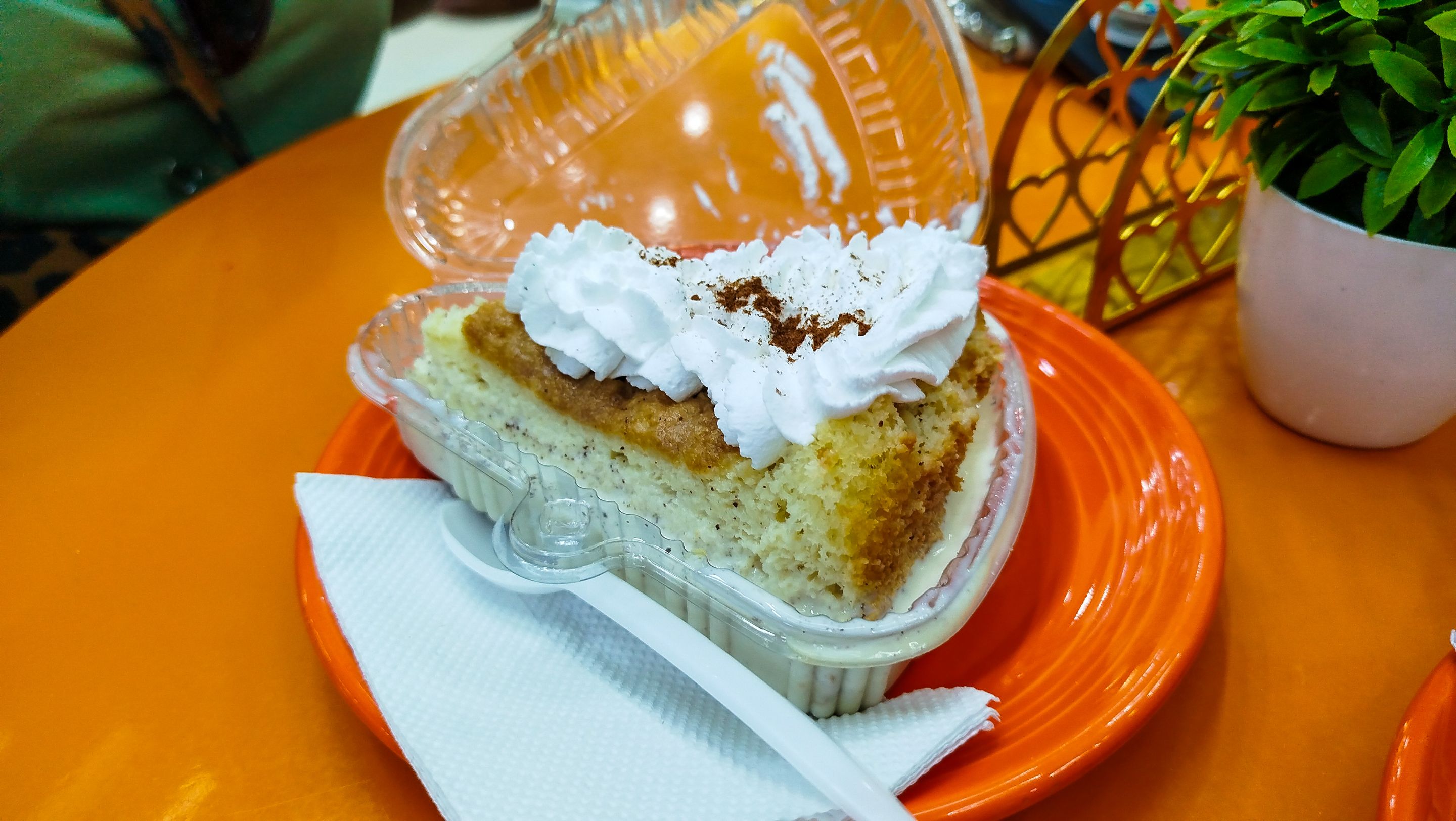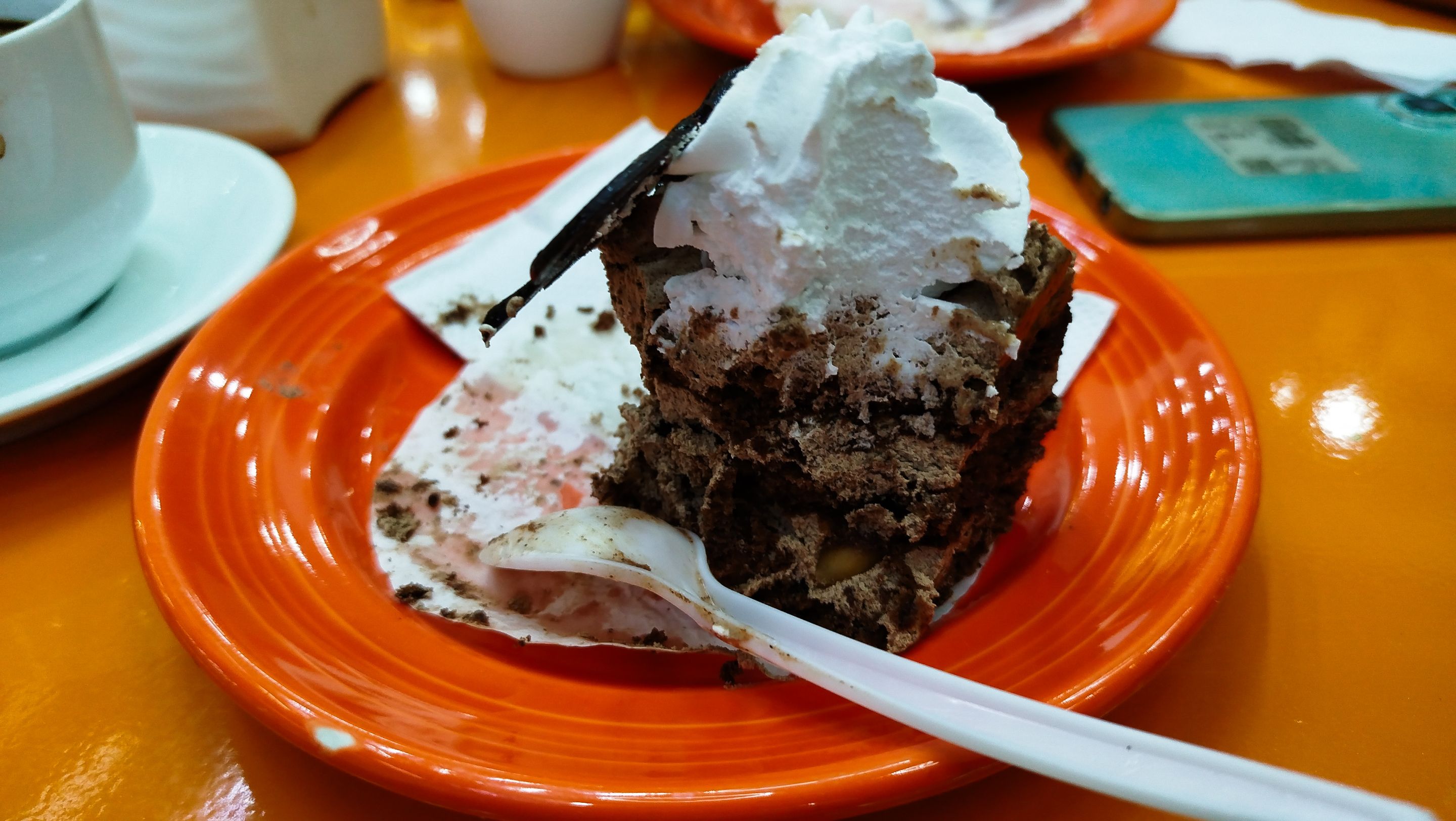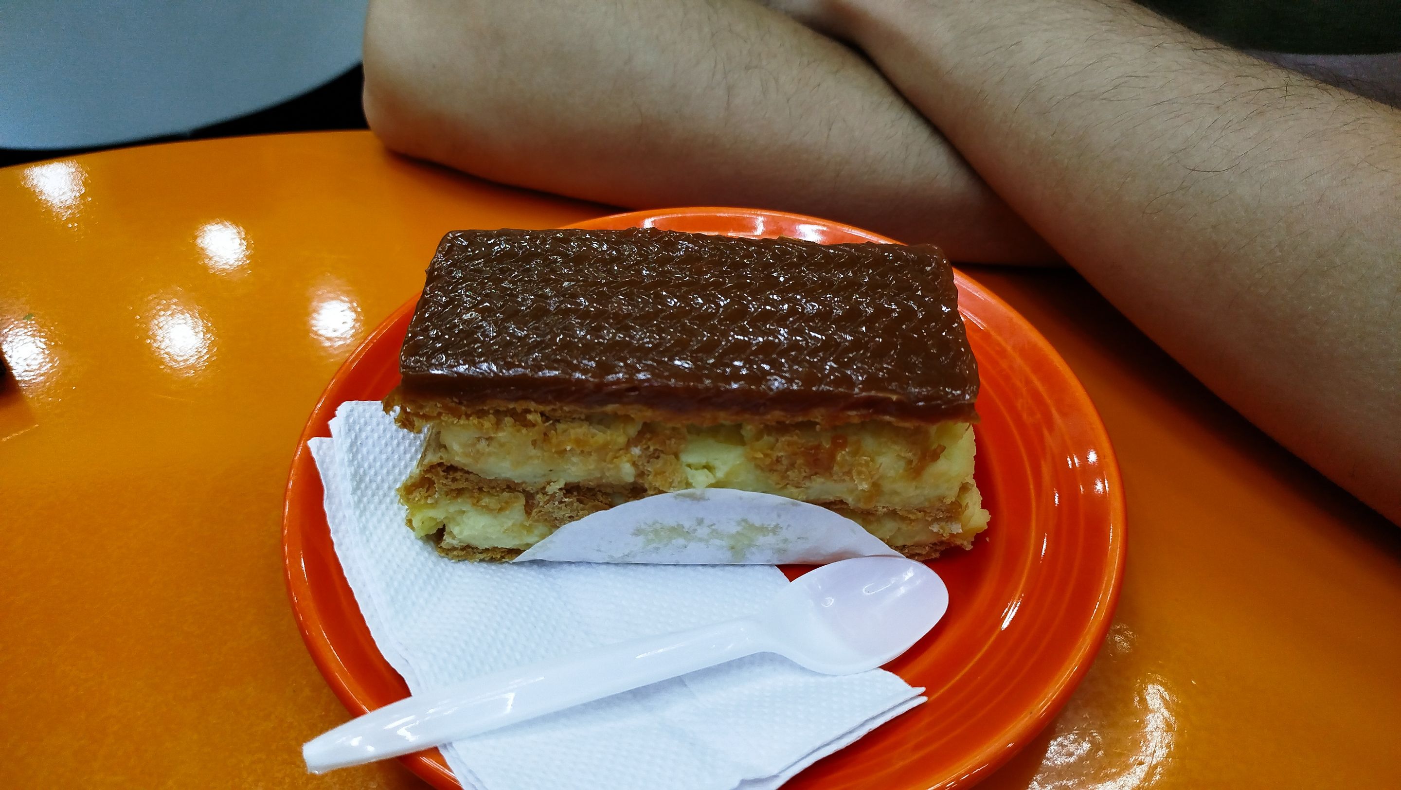 In the end, the sweets we ended having were one made of flaky dough that we call "milhojas" the translation is something like thousand sheets. It is related to the layers of thin dough. It also has a custard and a covering that is usually powdered sugar or dulce de leche. @octocel had a tres leches. This is an amazing cake that is soaked in three kinds of milk and also has some merengue and cinnamon. My choice was a weird thing I saw called San Antonio cake. It is a chocolate cake with nuts and spices. That was the interesting note. The spices and a less sweet cake was the perfect combination with my regular black coffee. It was an surprisingly good cake.