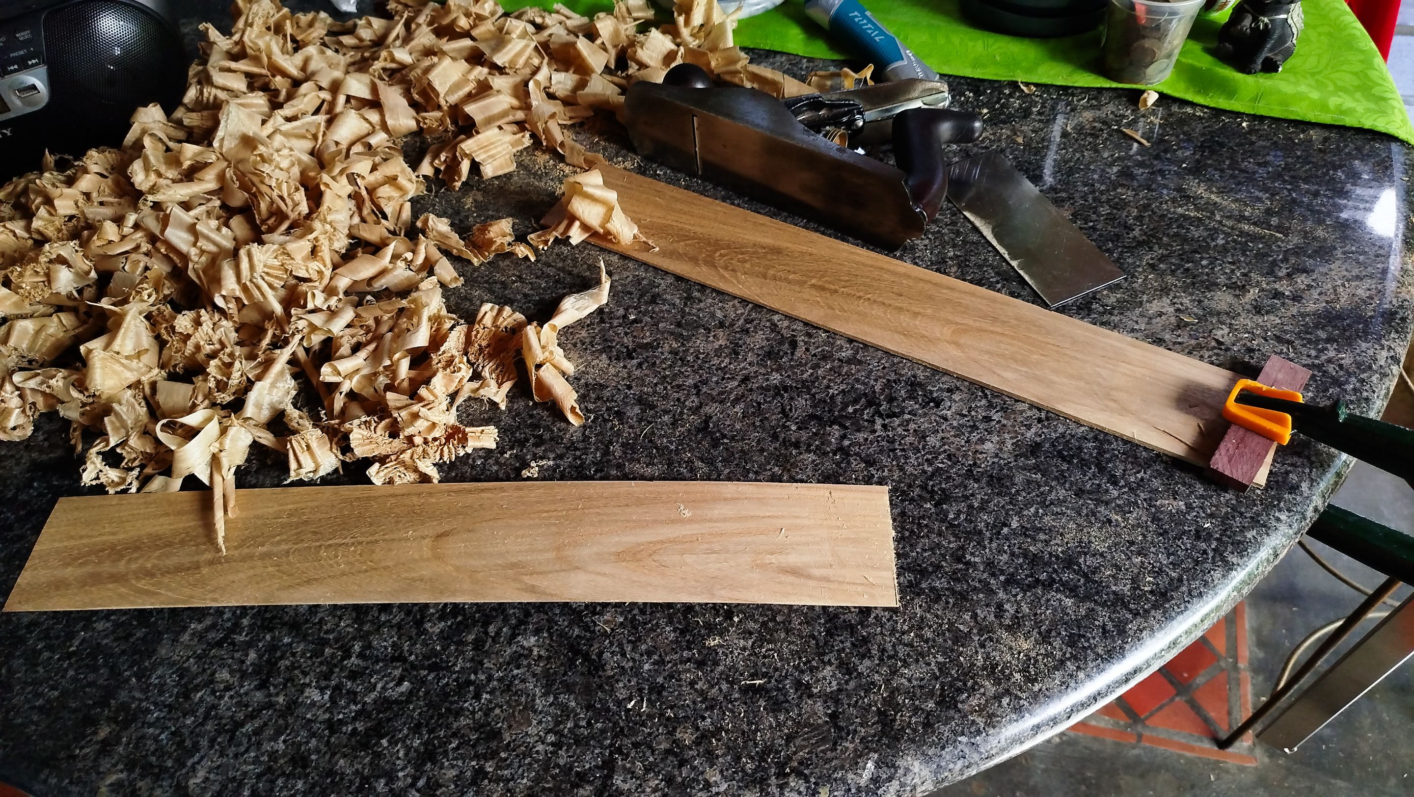 Now we are going to start removing material from the sides until we achieve the desires thickness. The first step is using the hand plane to remove material from both sides. The idea is to remove the cutting disc marks from both faces of the sides.