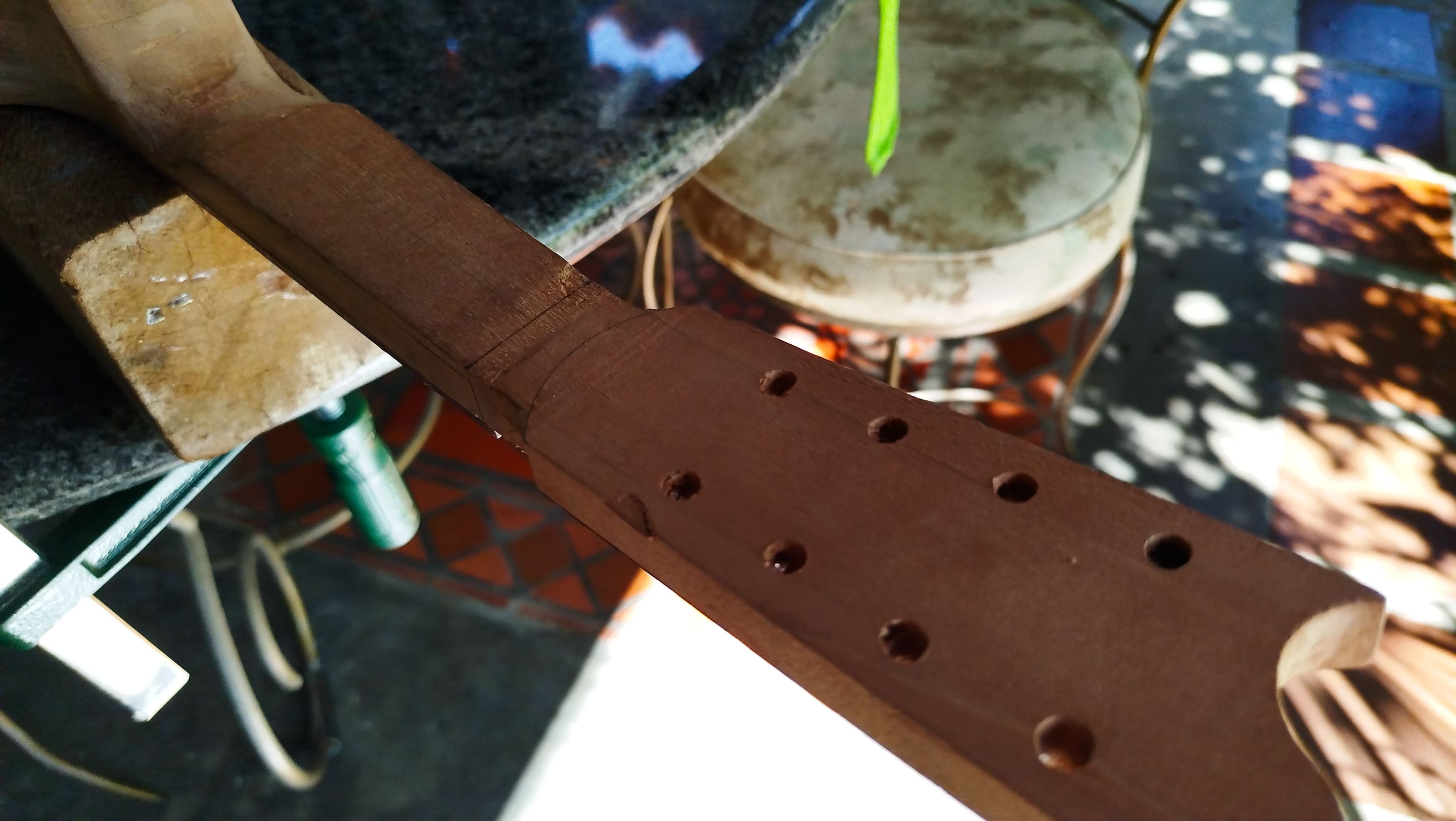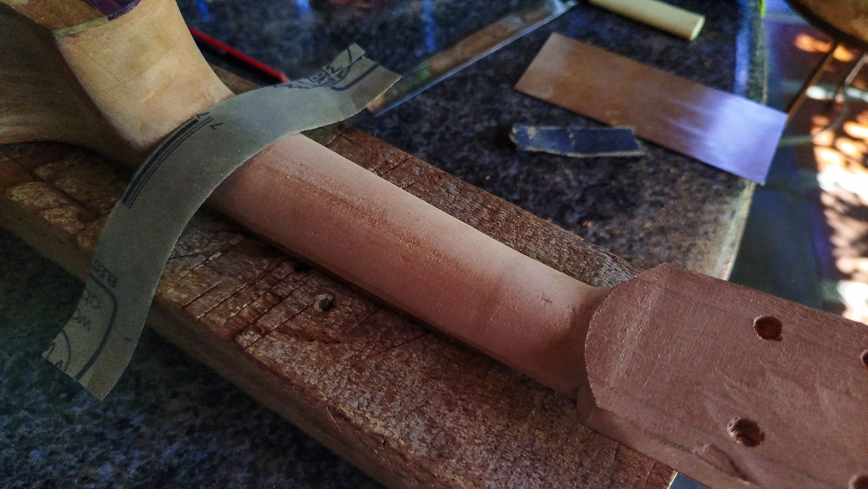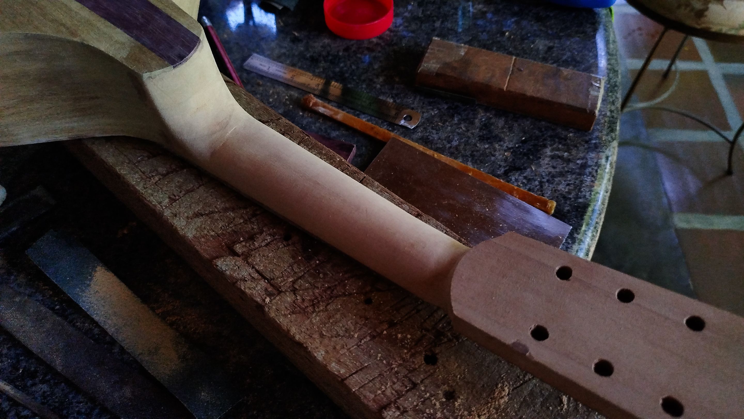 The sanding paper will be used to finish rounding the rest of the neck. We just keep passing the sand paper until we are done giving the shape to the neck and then we are ready to move to the next step.
