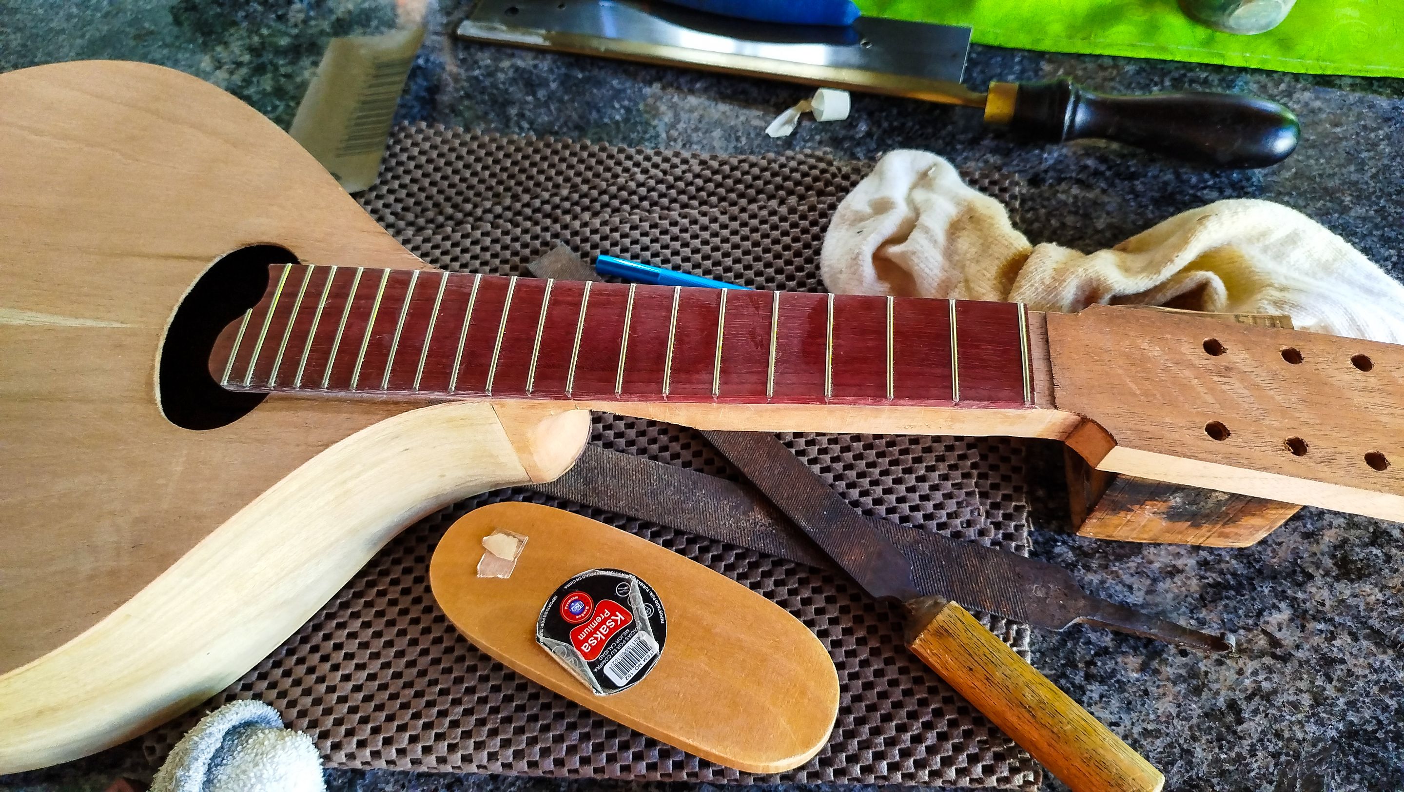 Welcome back to another entry on this Mandolin build. Last time, we worked on the fretboard to get it ready for the frets. Today, we are going to put the frets in place and then start the whole sanding process to apply the first coats of sealer to the rest of the instrument.