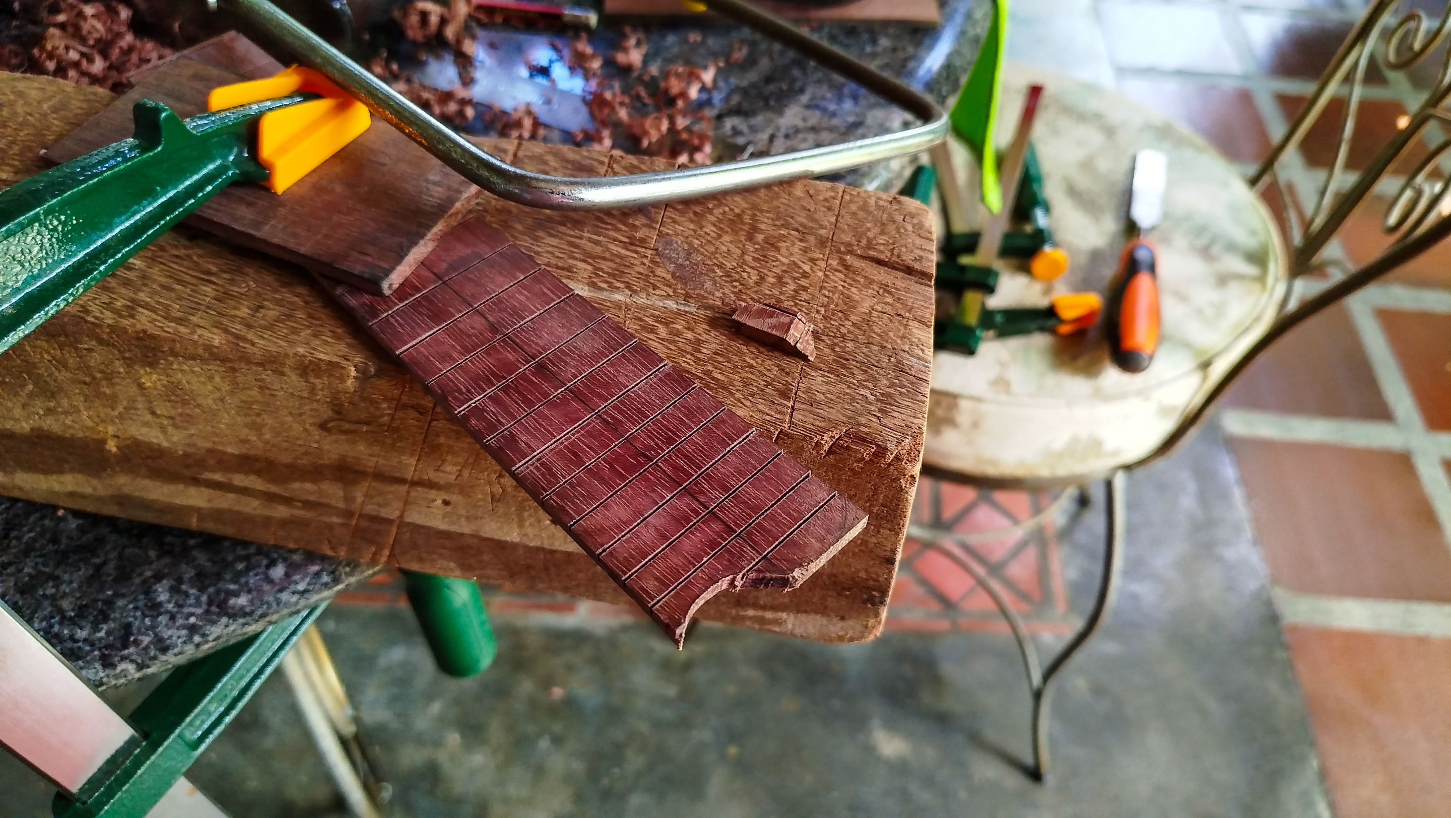 The rest of the task is having it rest until the fretboard glues up. And that is all for this time.