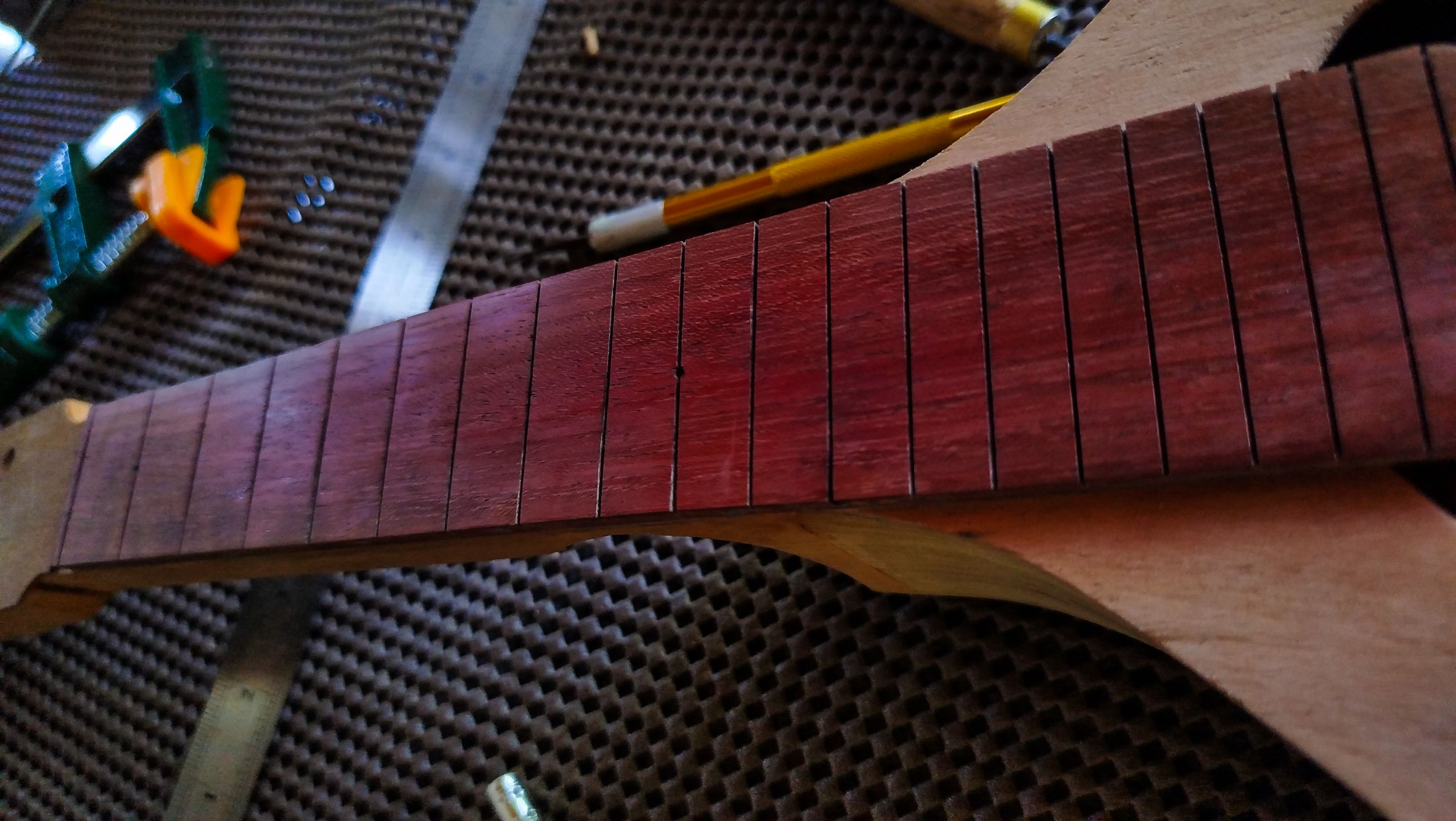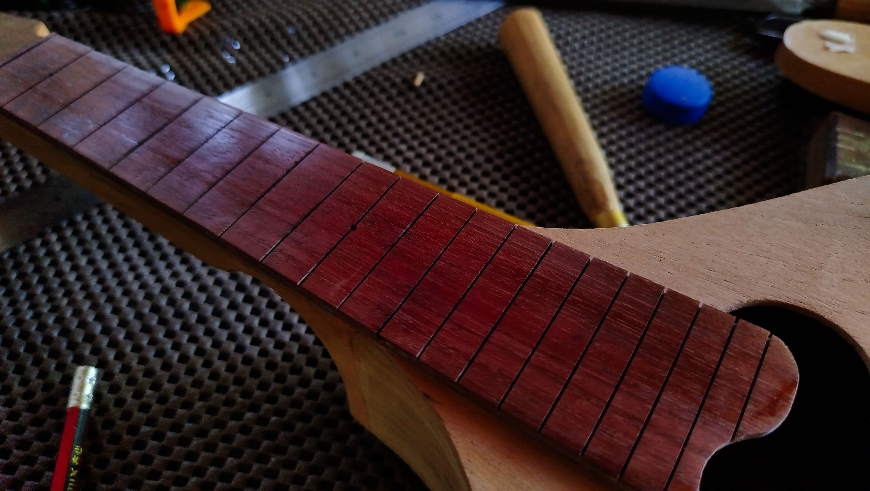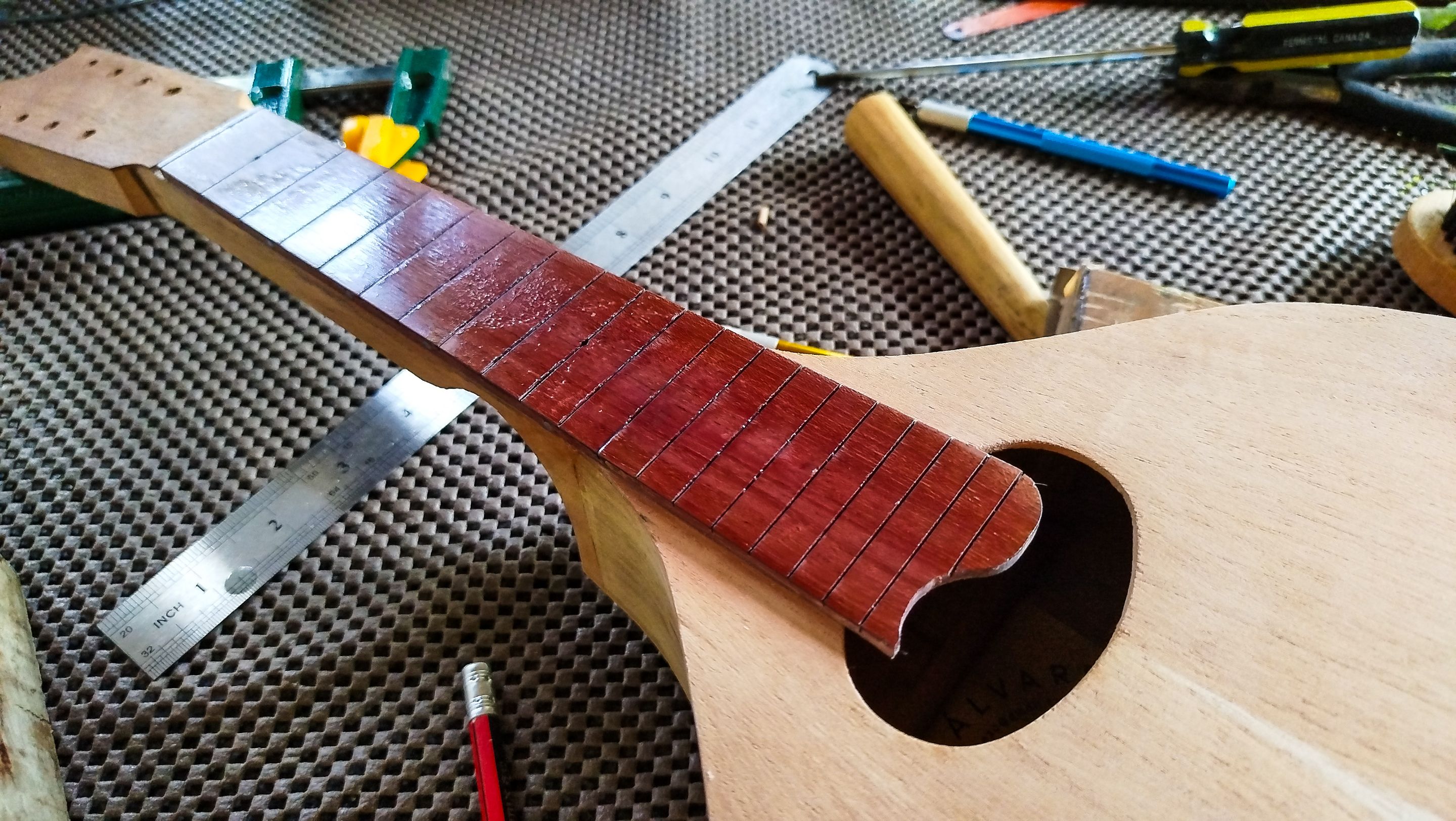 With this we can move forward to a next step. The next entry will be all about getting the frets in place and do some other task to advance the project. Thanks a lot for reading. See you next time!