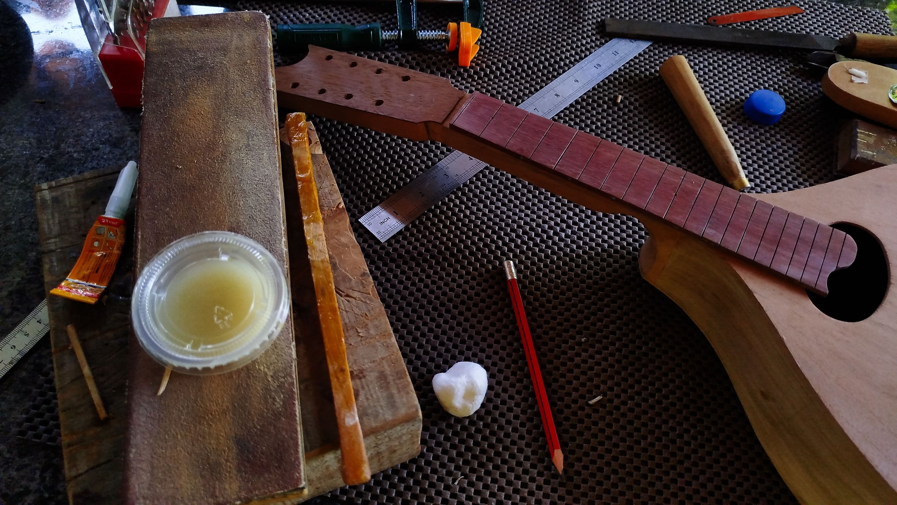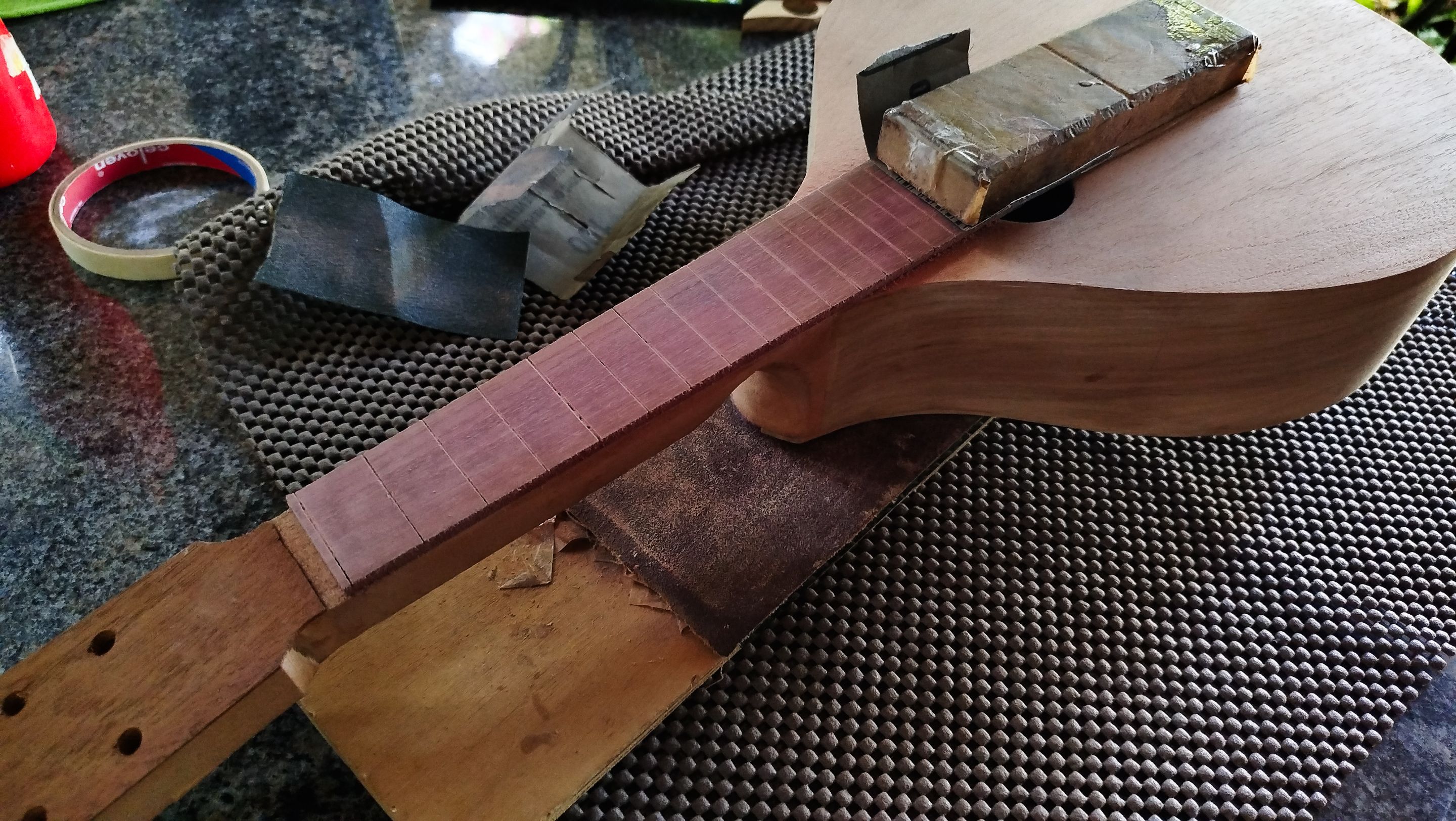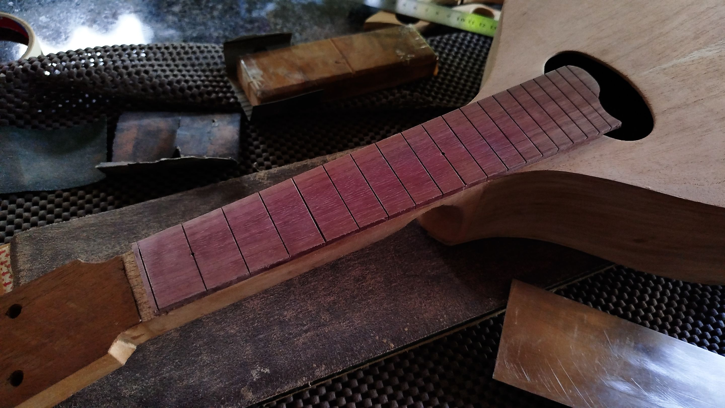 With this we can move forward to a next step. The next entry will be all about getting the frets in place and do some other task to advance the project. Thanks a lot for reading. See you next time!