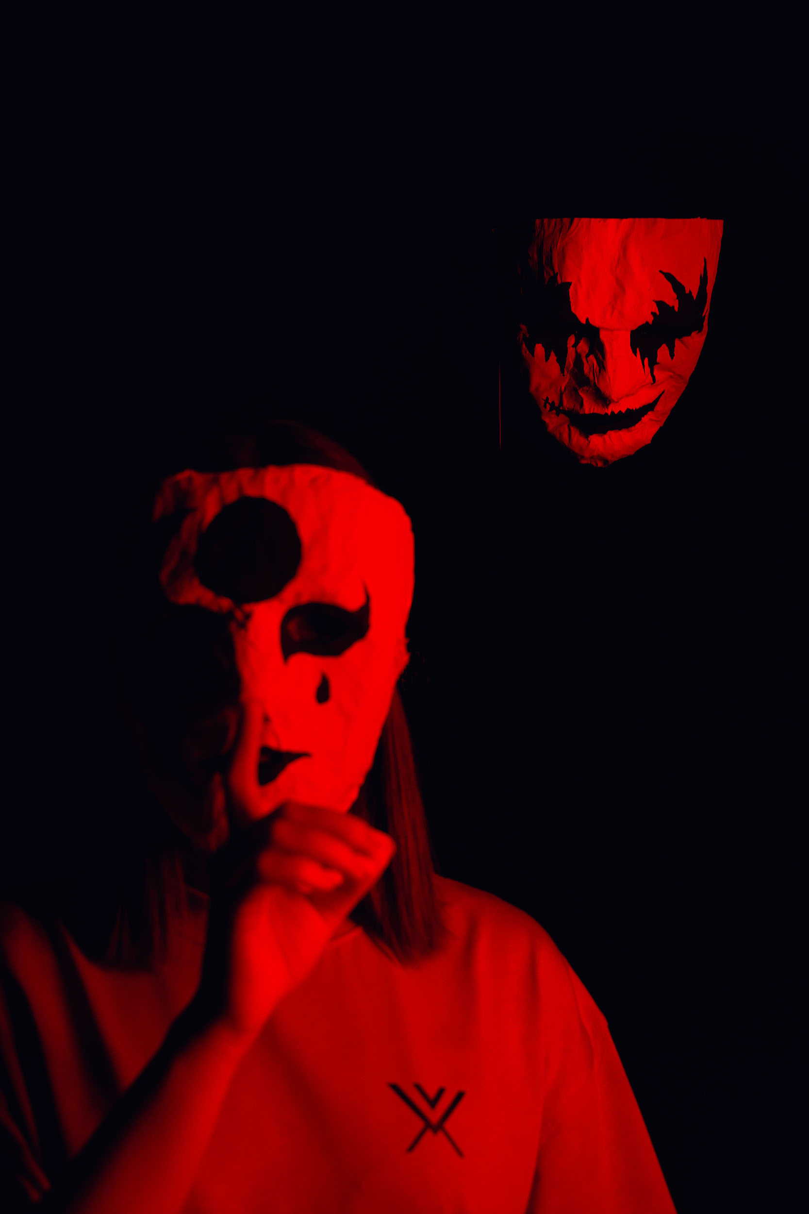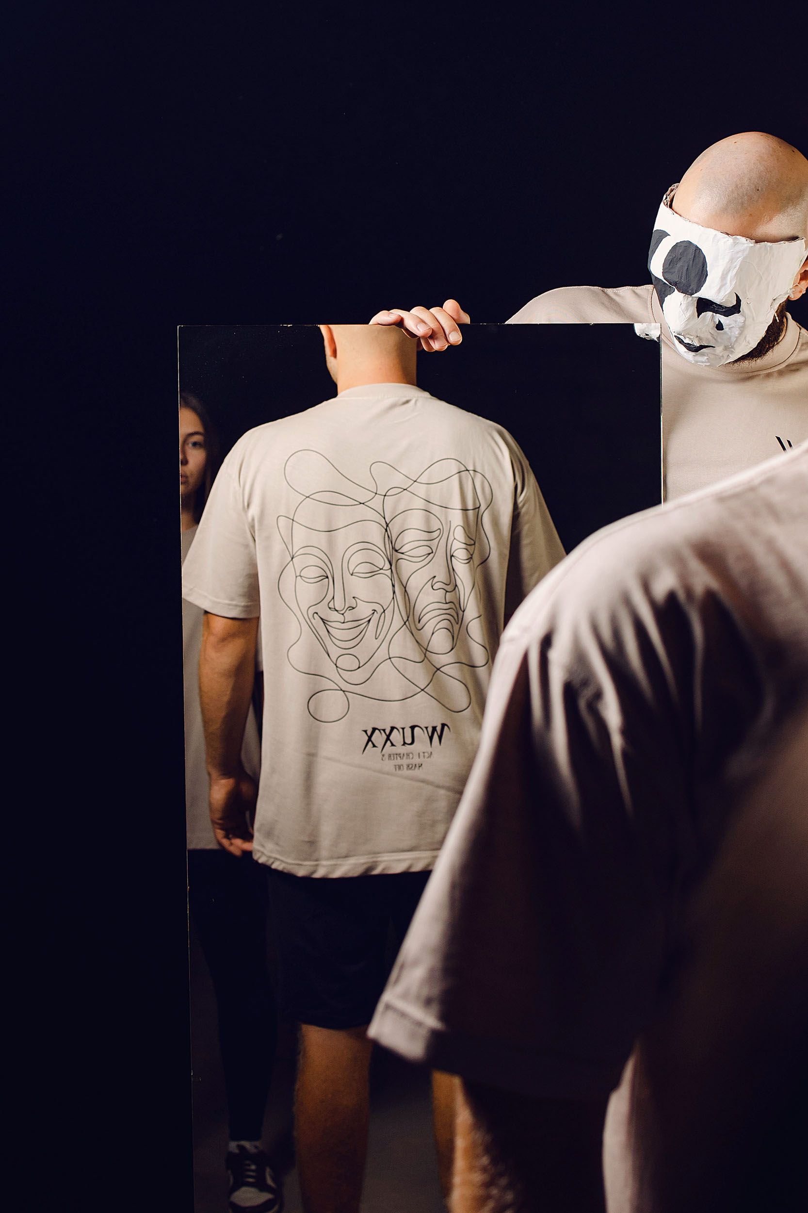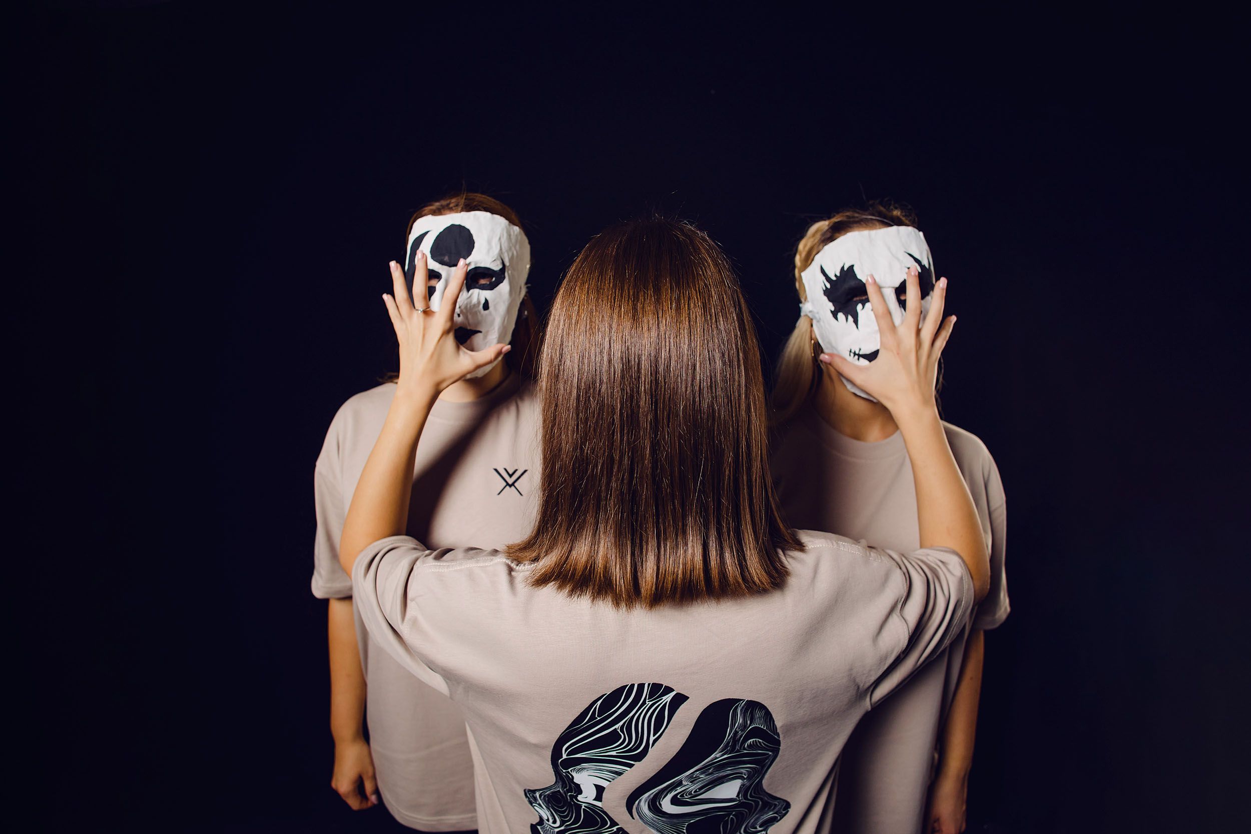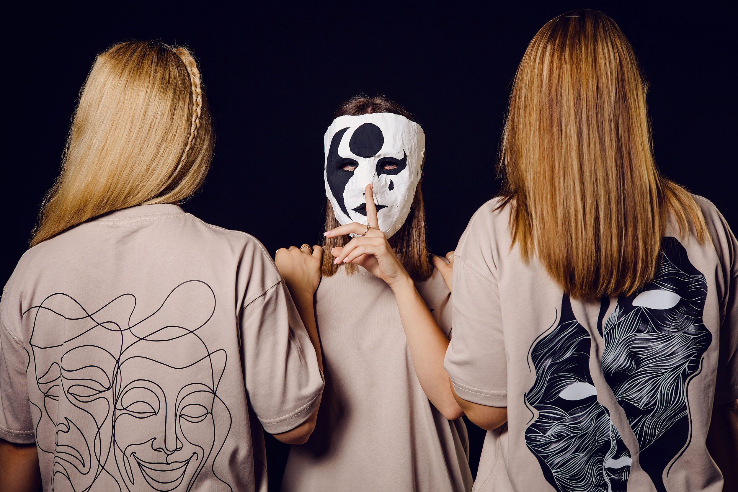 One of the ideas was to put the masks on a string, failed, managed to put them on the background. Also the softbox light was not working anymore, it was too flat. So i ended up using the tube lights.