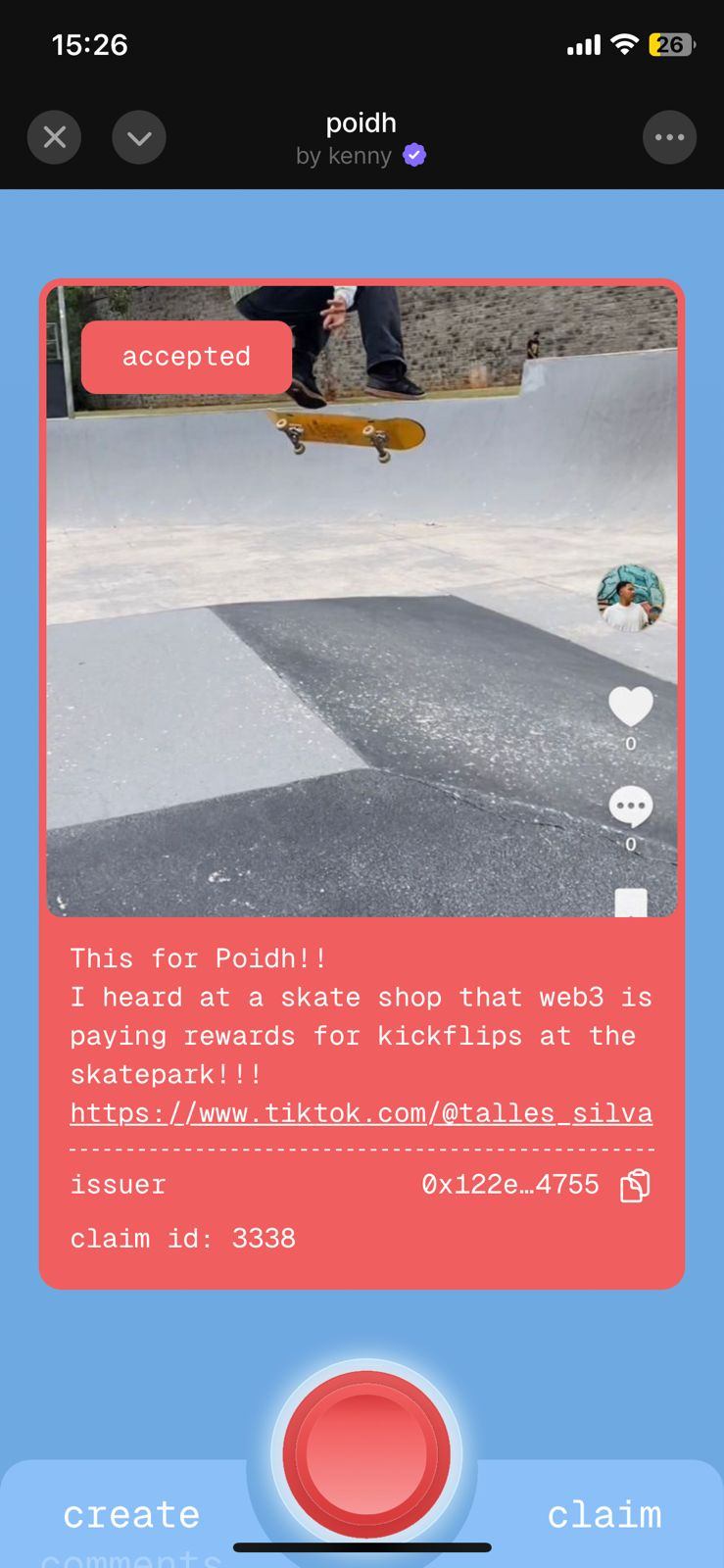 (Eng) My bro was in a huge rush after the São Paulo event to travel to another state and stay in the skateboarding race and I saw that he was really going after it, so as always we talked a little about web3 and how it will still revolutionize the skateboarding culture as we were used to and I presented him with a challenge that was happening on POIDXYZ, where they were paying a reward worth 56 dollars (Something like 320 reais here in Brazil) and at that moment it would help our bro a lot to get ahead with his plans!!