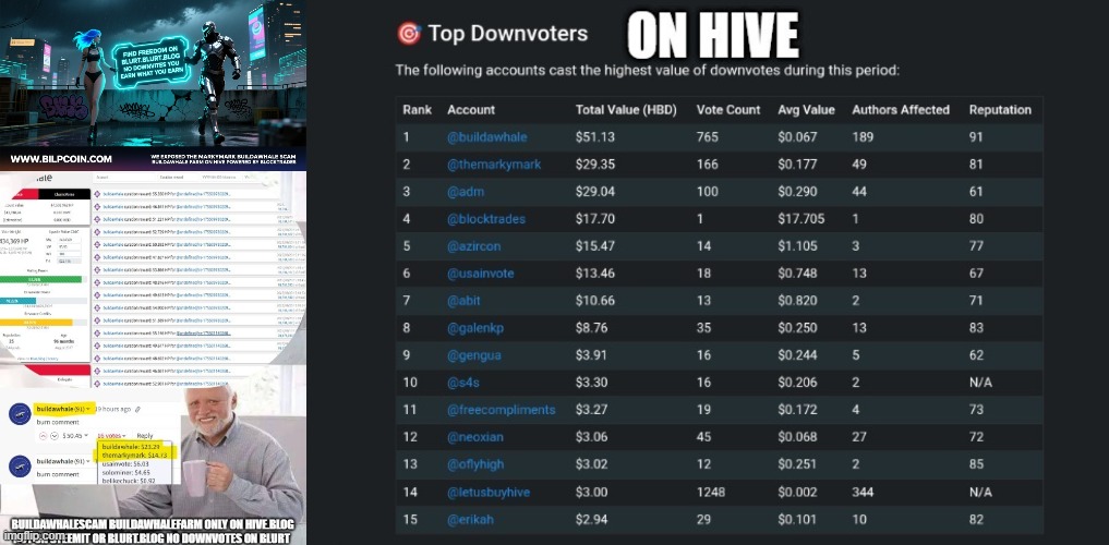 At Bilpcoin now, we name it: The Buildawhale Scam Farm — a machine disguised as curation, masquerading as influence, feasting on the rewards meant for creators, builders, dreamers. A network not of merit, but of manipulation. Of alt accounts. Of self-votes. Of coordinated downvotes hurled like stones at anyone who dares question the system.