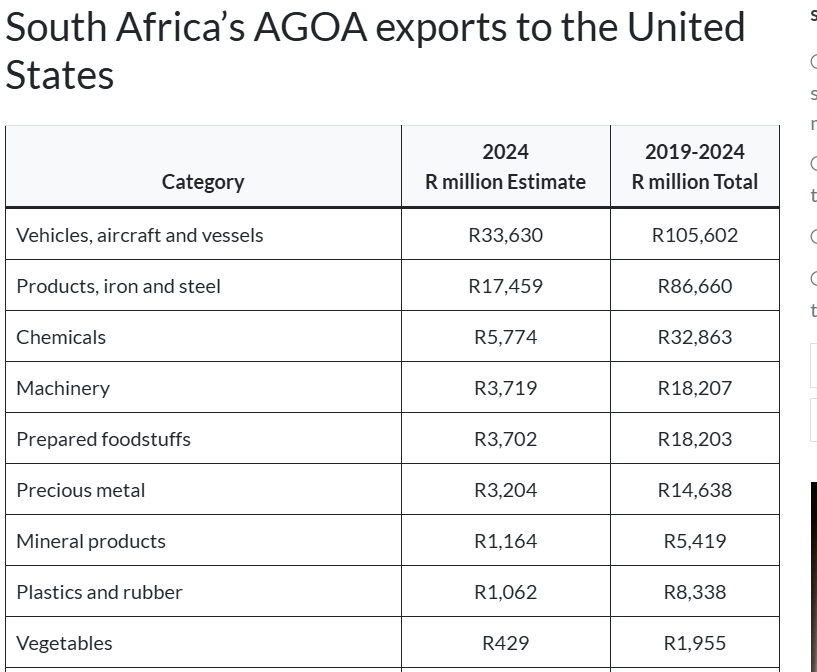 The problem with the US tariffs is they are not 30% and are actually much higher due to SA being part of the Most Favored Nation (MFN) agreement being a member of the World Trade Organization. This is a standard customs duty applied to all WTO members and SA was exempt from this due to the AGOA deal and since that ended the MFN custom rates apply. These rates vary depending on the category of the item. Imagine not being able to negotiate a trade deal when you had the opportunity to do so and now have left your country's economy hanging.