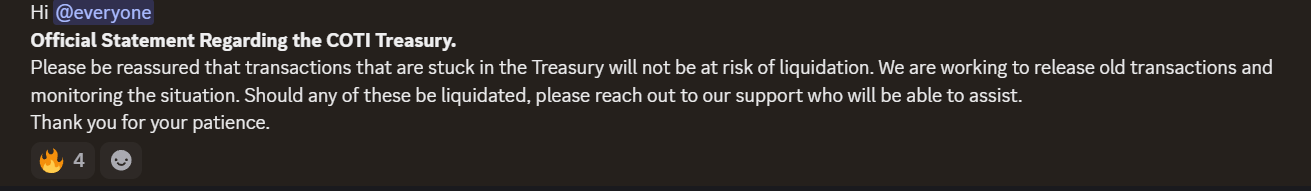 The COTI Treasury has had quite a few buggy issues of late and I know this is being fixed with a new version of the COTI Treasury being worked on and expected to launch very soon. I had no idea the problem was so widespread until I saw this message come through on Discord and the friend who I helped stake COTI reported they were struggling to log in. The logging into Metamask first and then the Treasury was not working so I told him to wait until next week. My last issue a few months ago was resolved and the 530 COTI that went missing appeared last week.