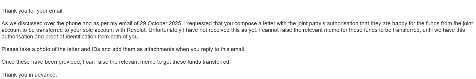 I was not expecting compensation for my complaint and hassles and right now and that number is rising with every cock up they are doing. How hard can this be to fix when the documentation requested has already been sent.