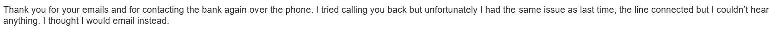 This would be almost comical if it was not real which sadly this is real and where customer services is currently in every company. Yesterday I followed up to see where we were with regard to a time line of having my ex bank account funds transferred to my new banking account. My old account was closed on October 5th due to new Brexit regulations so we are talking a full month to get this fixed.