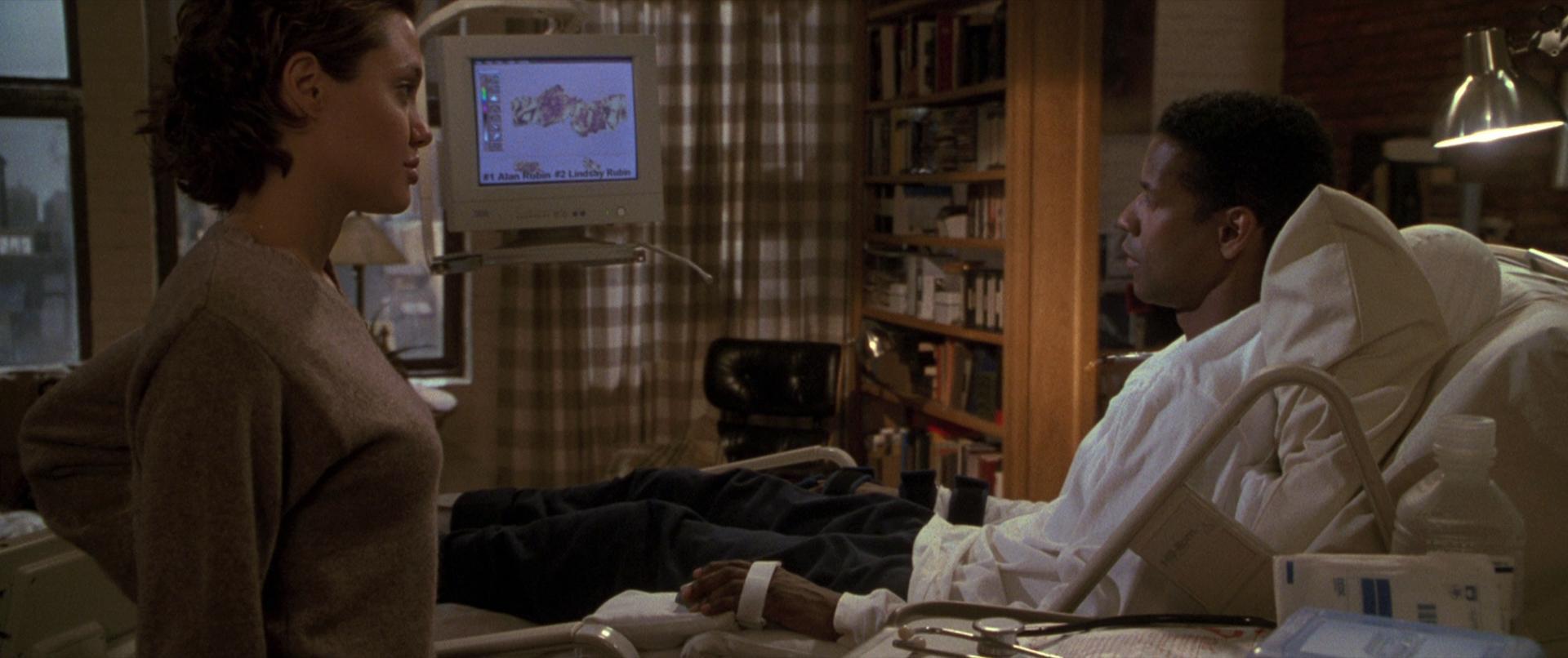 The entrance of Amelia Donaghy (Jolie), a young and intuitive police officer, is the catalyst that changes everything. She is not just his eyes and feet at the crime scene; she is the mirror of his own forgotten humanity. Together, they form an unlikely team, a duo where his cold logic clashes and, ultimately, intertwines with her instinctive sensitivity.