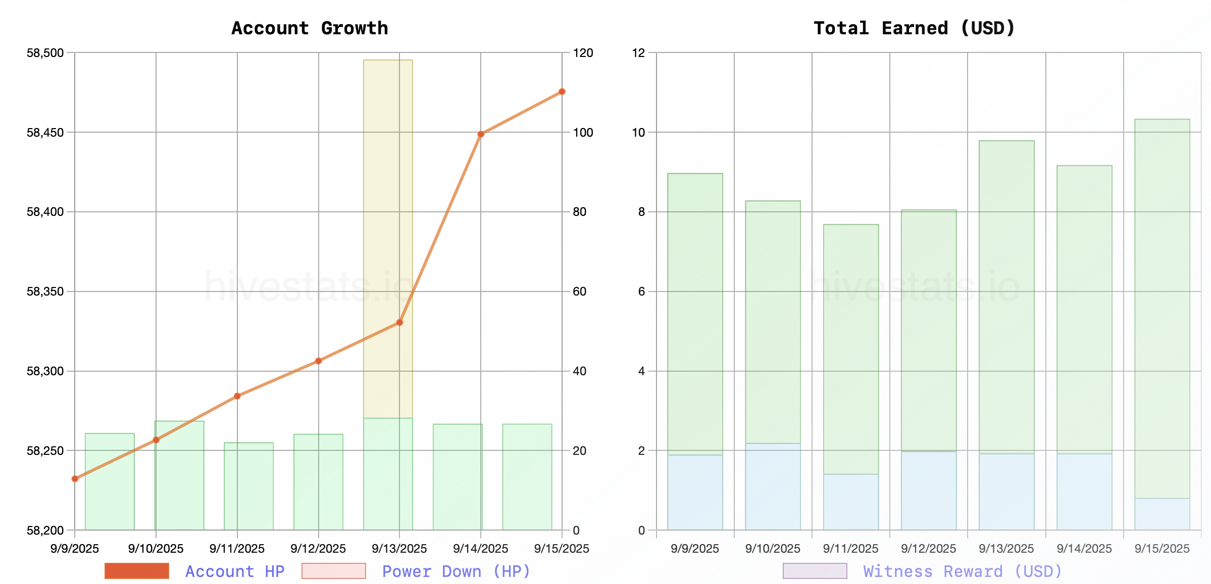 Last week I made 456.39, bringing me to 58476.04 total Hive Power. That’s 97.5% of my goal!
