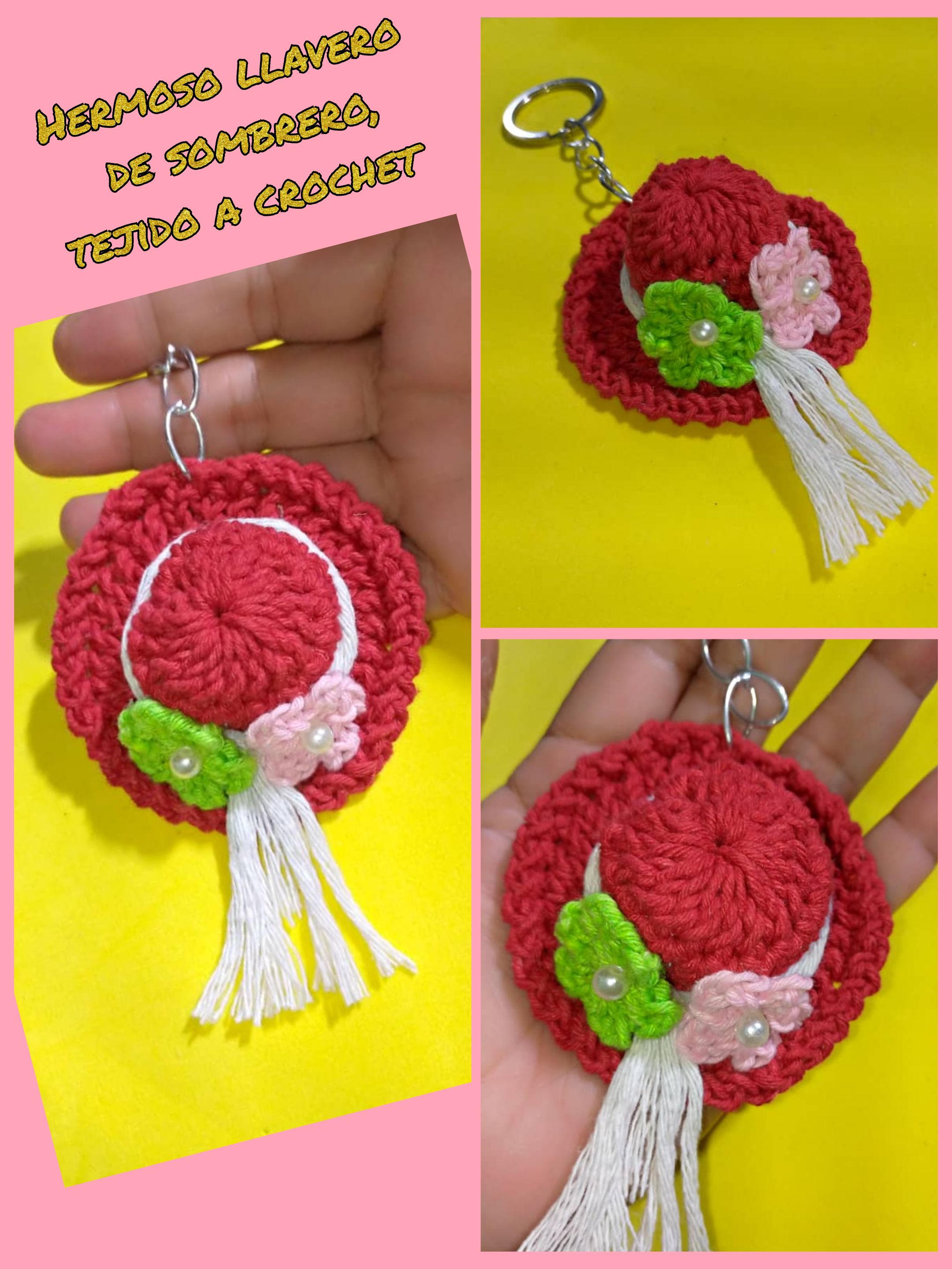 Esp/Eng Tutorial: Cómo hacer un lindo llavero de sombrero 👒, tejido a crochet / Tutorial: How to make a cute hat keychain 👒, crochet knitting