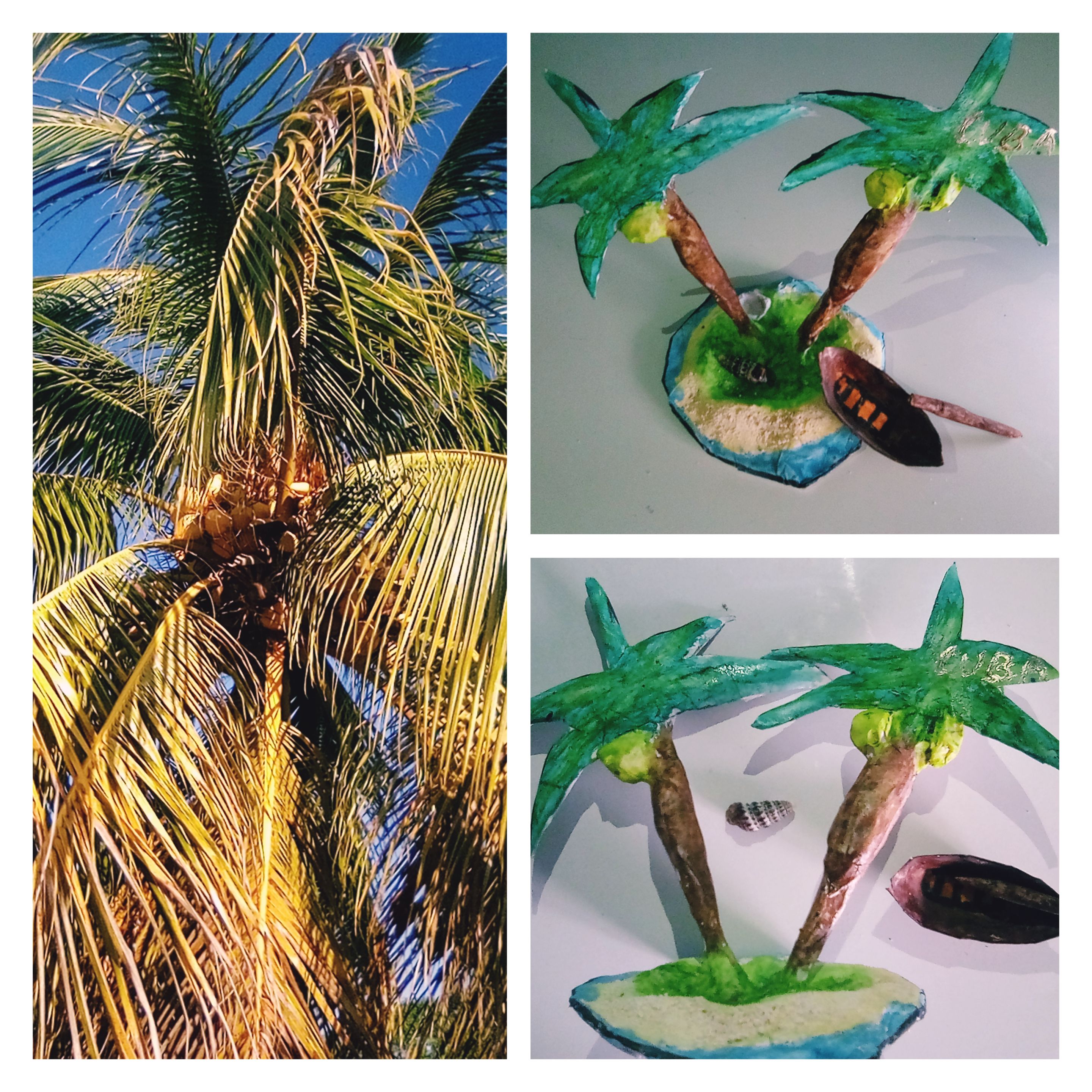 Confeccionando centro de mesa personalizado en forma de Isla tropical./Making a personalized centerpiece in the shape of a tropical island. Esp/Eng