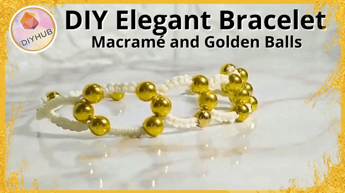 DIY Elegant Bracelet. Macramé and Gold Balls /Diy Elegante Brazalete. Macramé y Balines dorados