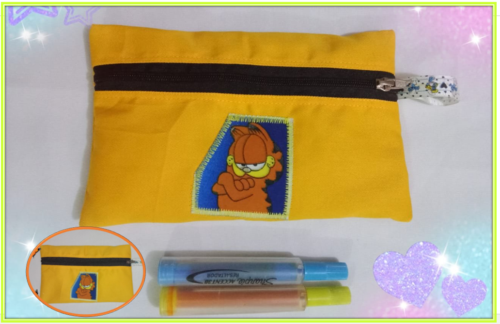 DIY; School pencil case decorated with Garfield Eng - Esp