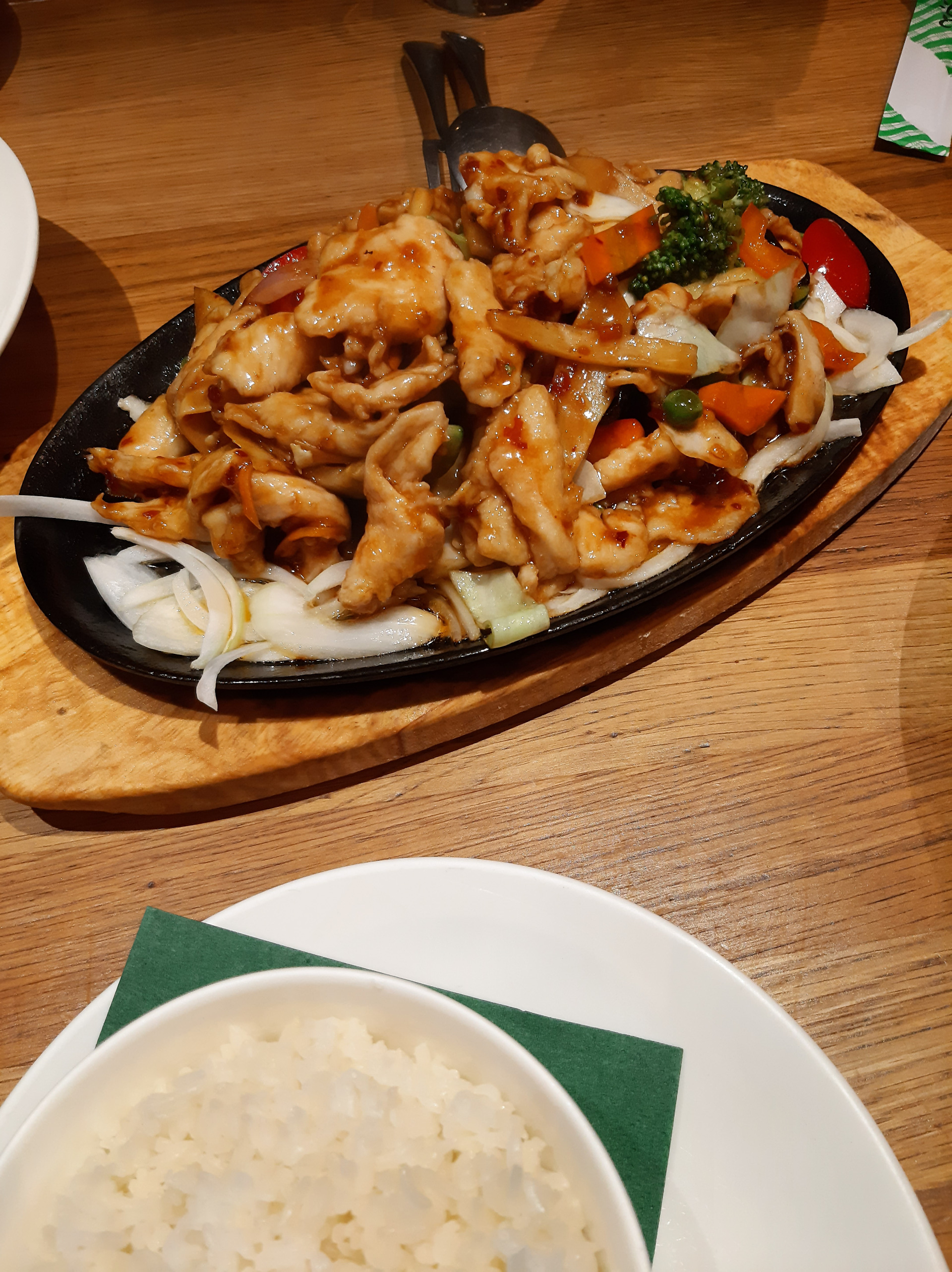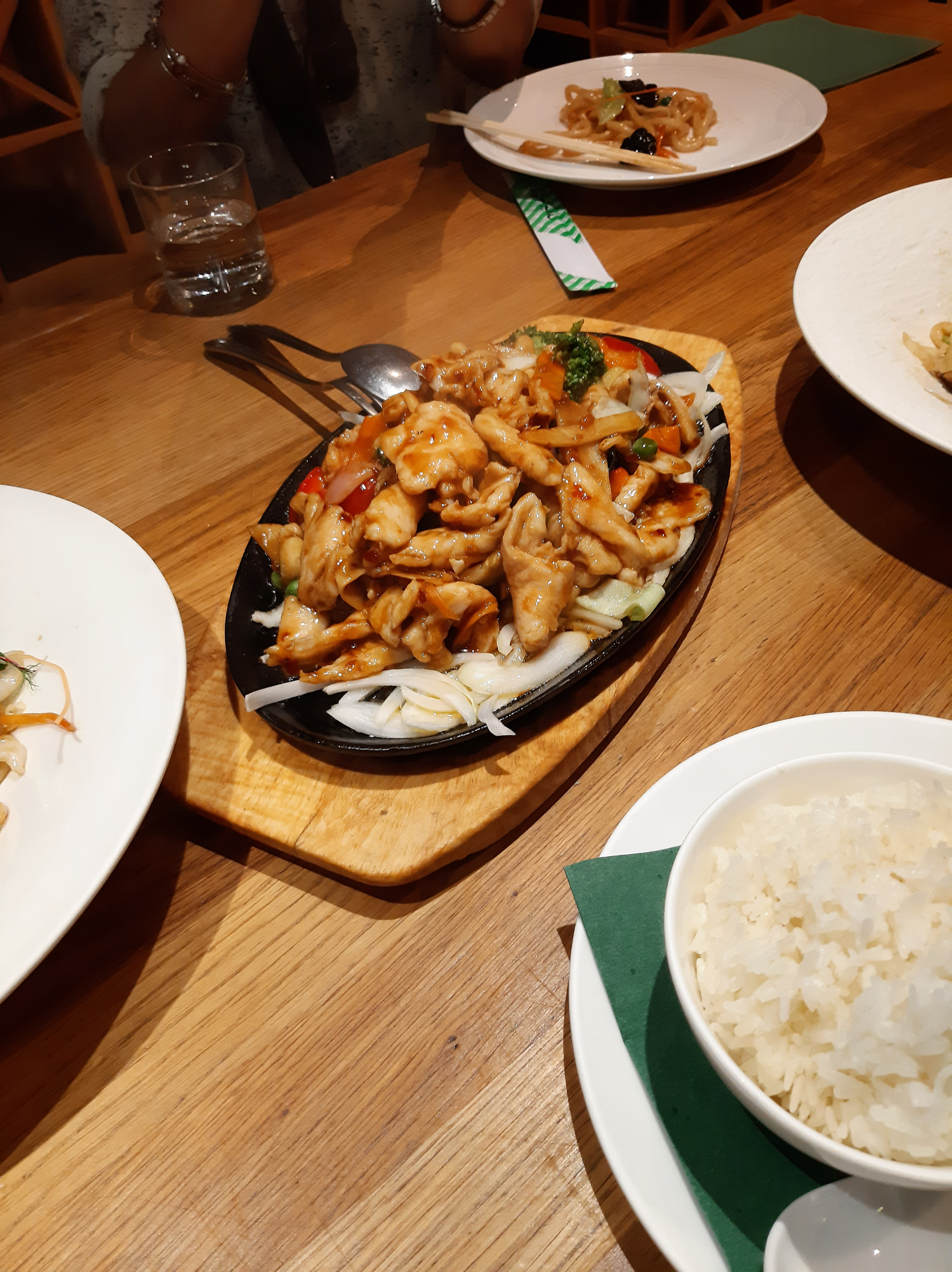 I wish I took more pictures here. We ordered rice, Sizzling Plate Chicken and Shanghai Noodles with Beef. Pictures from my phone.