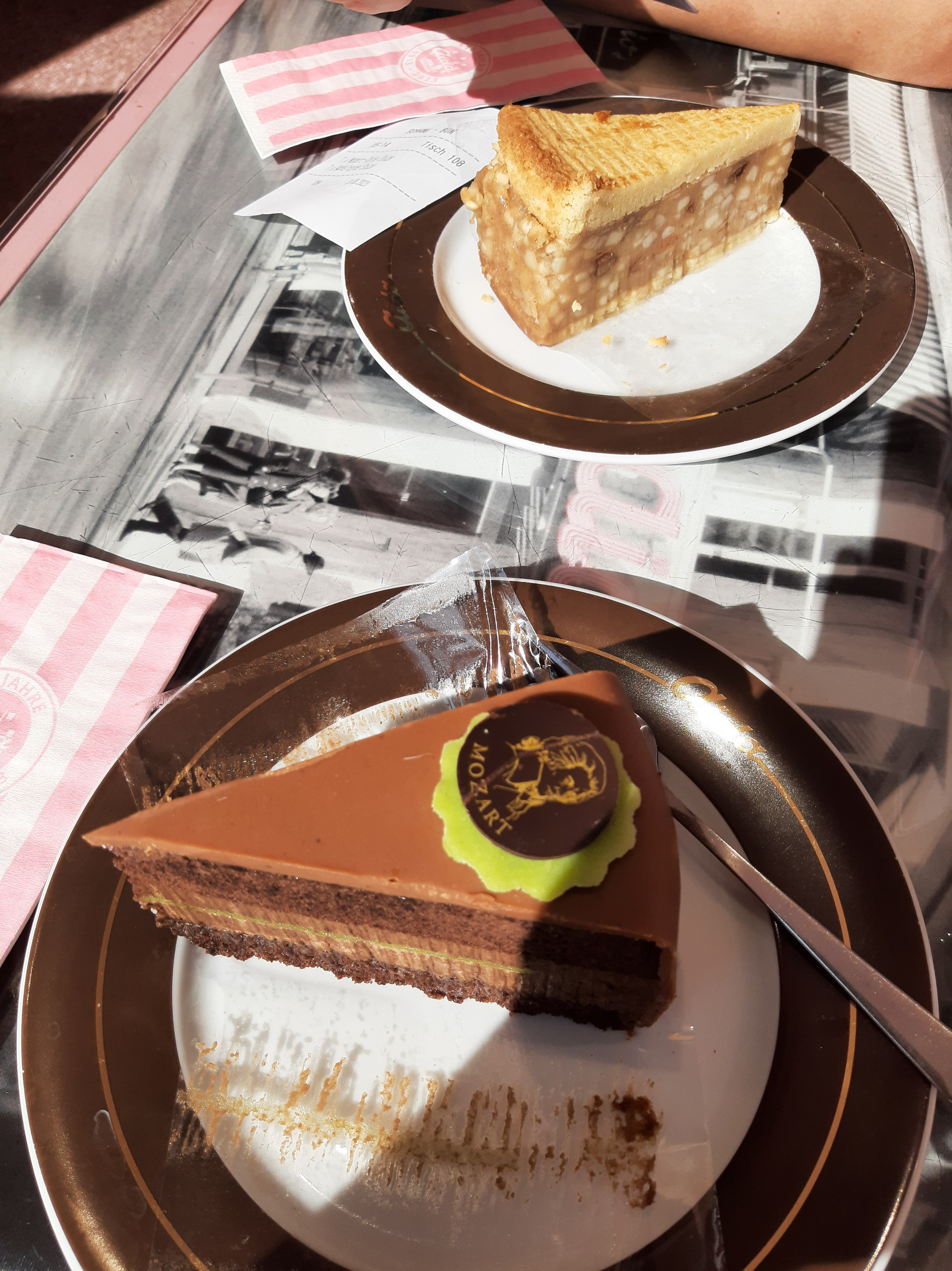 Photo of cake slices we tried at Cafe Aida. The one below is a chocolate cake and I think the top one was an apple pie slice. I wish I took more pictures at the time.