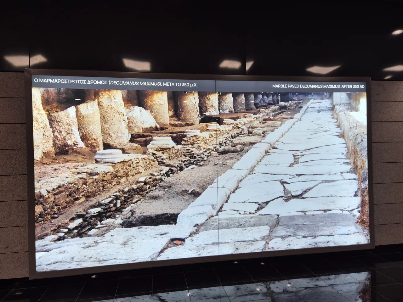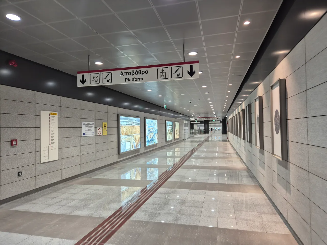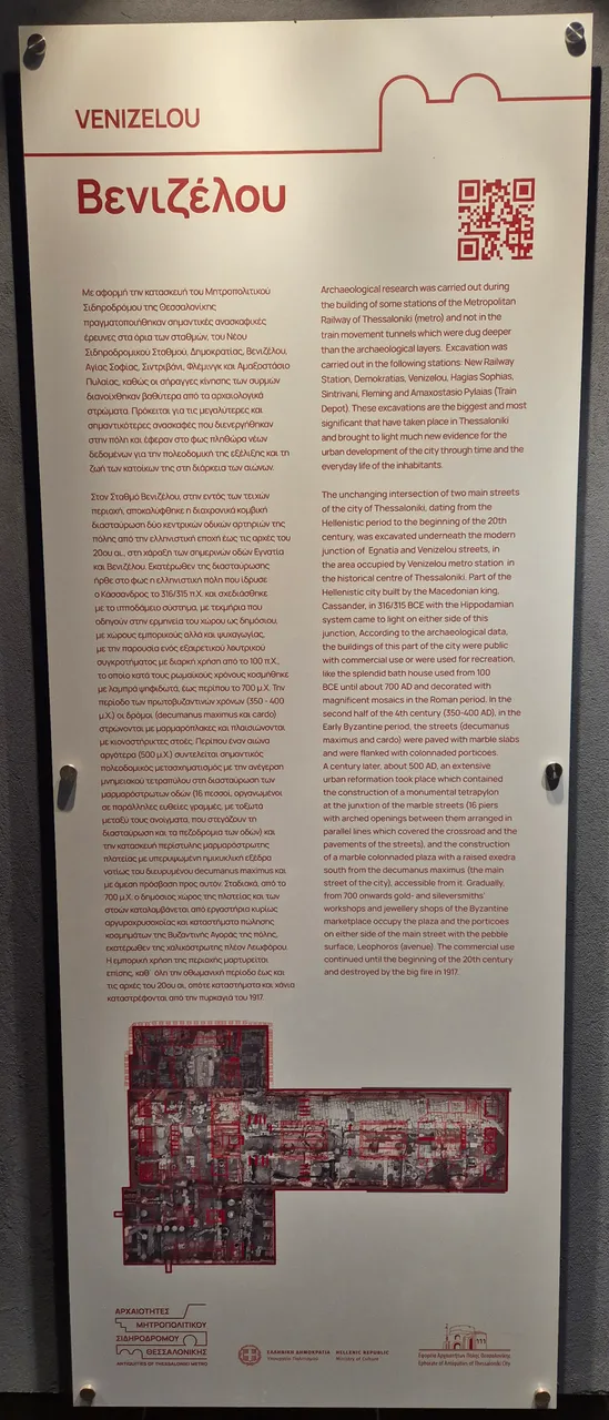 In the Thessaloniki Metro, the stations are modern, spacious and not overly interesting (except for the installation of these excavations and notice boards).