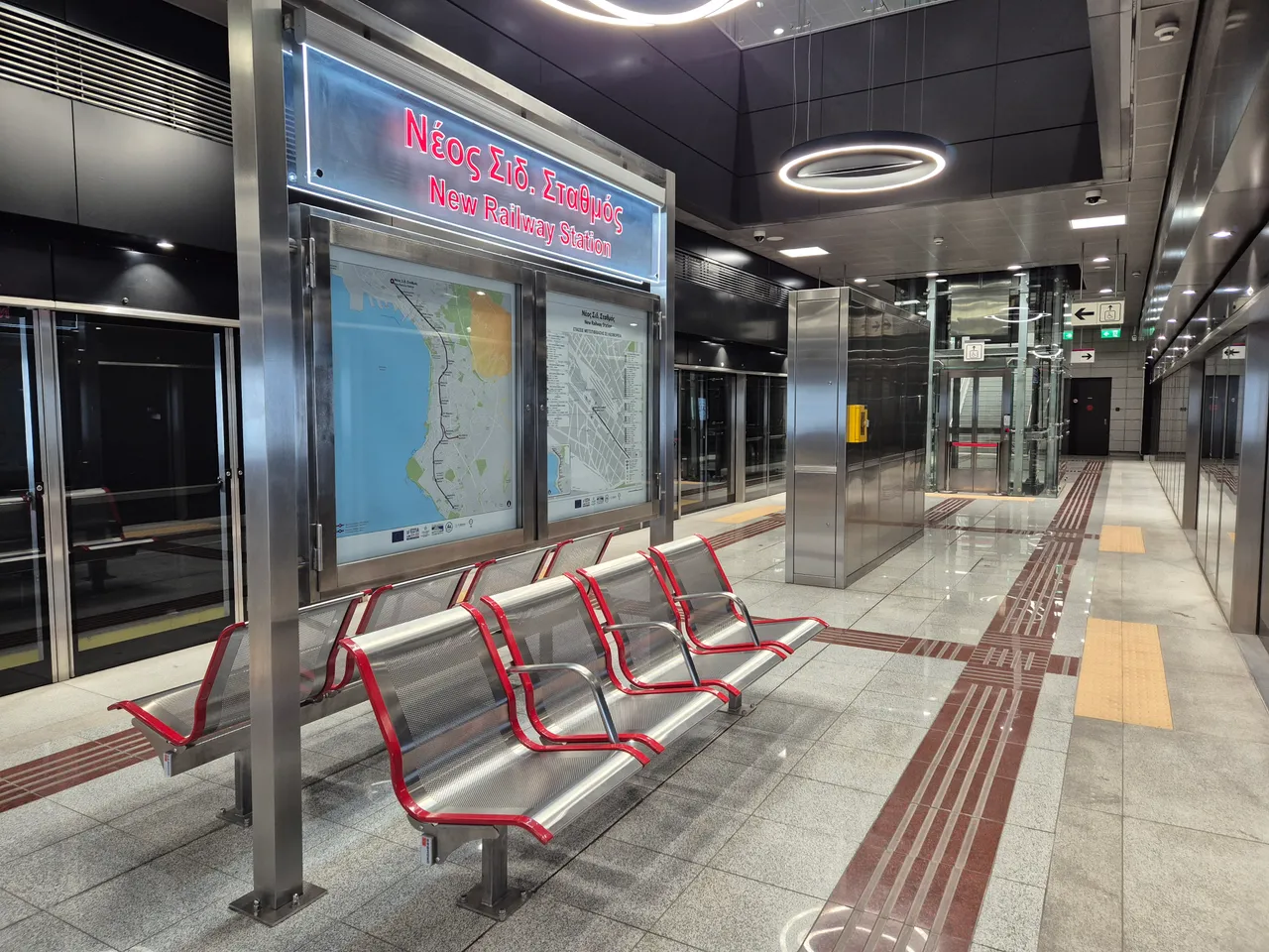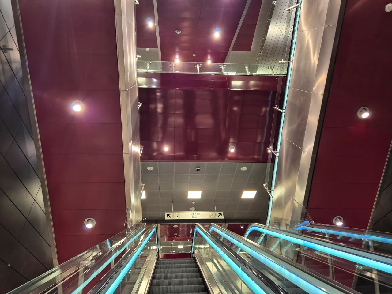 The entrances to the metro station are located on several sides. Escalators, neat and clean corridors of the station, without crowds, which is simply incredible for Thessaloniki, I liked them at first sight.