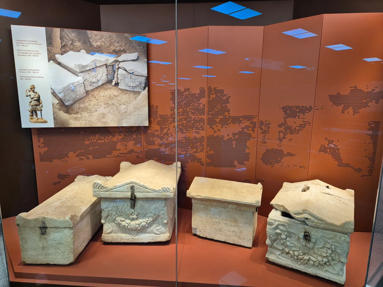 On the way, I stopped at a glass display case that represents the periods of the mentioned societies in the most beautiful form, from the Hellenic, through the Roman, Byzantine, Ottoman and finally the modern era.