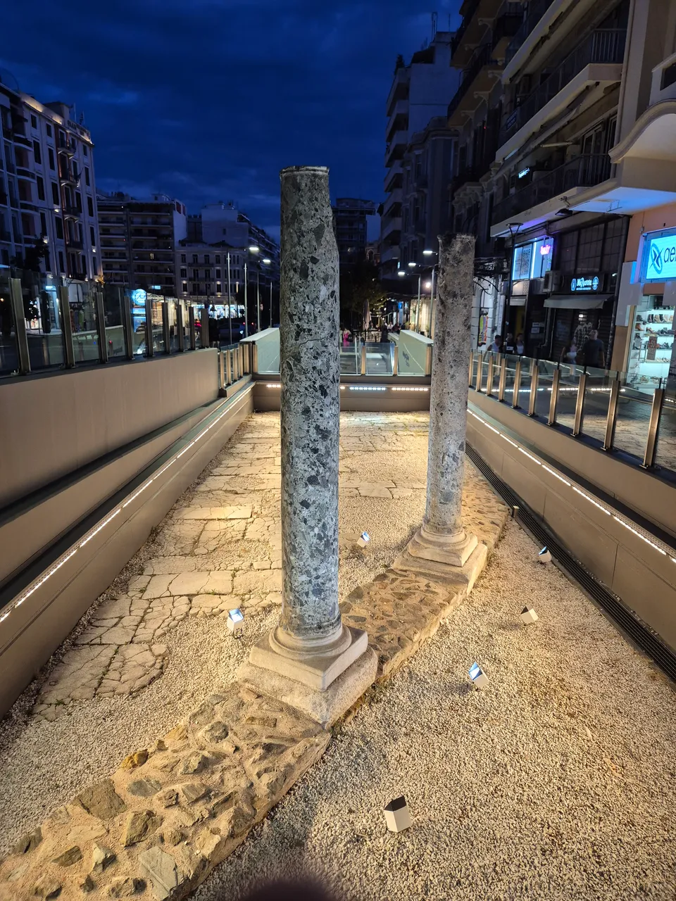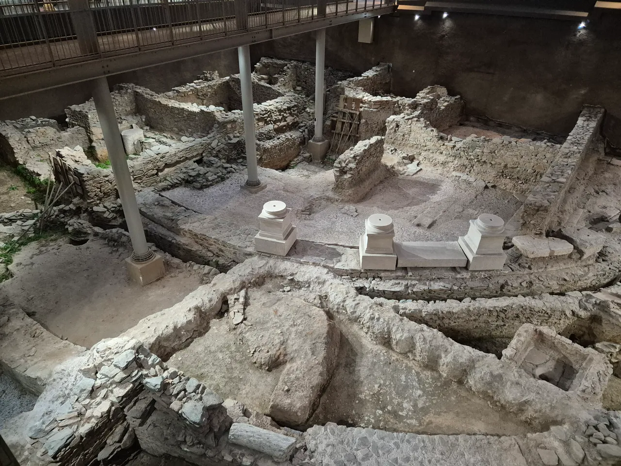 Those who are not in a hurry, have the opportunity to learn about the history of this locality through interactive monitors and to enjoy the view of the plateaus, columns and walls that once adorned the buildings of Thessaloniki.