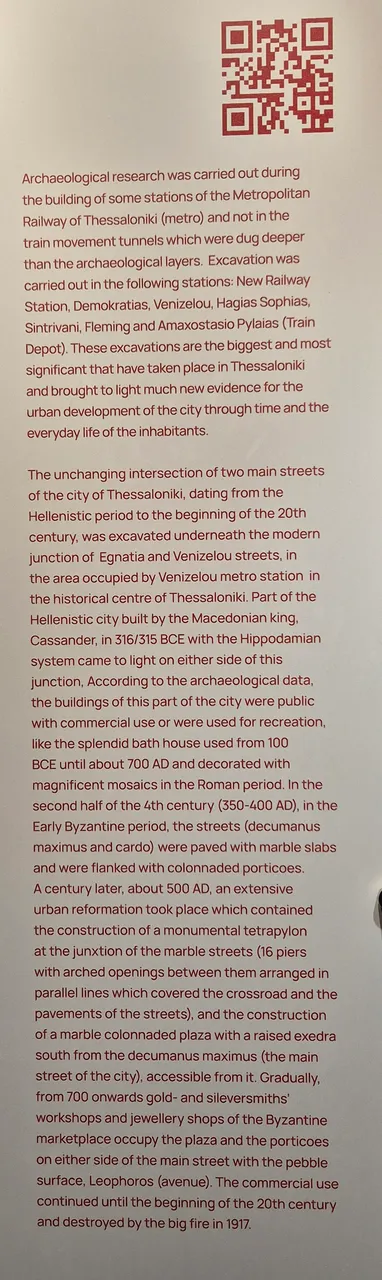 Since those days, Thessaloniki has had an interesting and tumultuous history, it has grown and developed, and the most striking proof of this is the "timeline" they displayed at the entrance to the Agia Sofia metro station, where the "depth" of the city where the remains were found, from its origin to today, is shown.