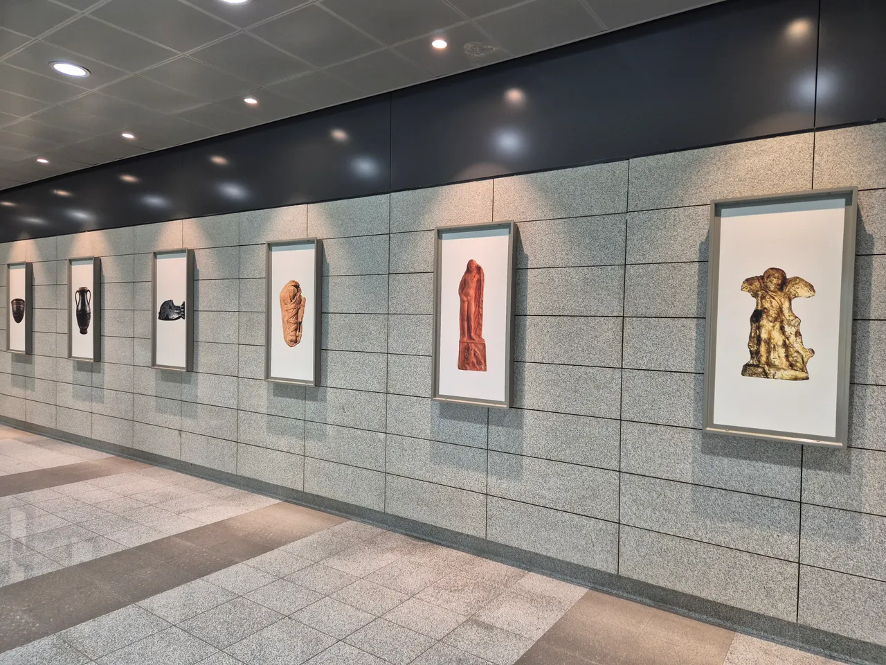 If you thought that this was all that was on display in the Thessaloniki stations, as I thought, you are mistaken. There are not many metro stations in Thessaloniki, and apart from those archaeological objects, tombs and parts of the floor or walls that are exposed, there are not any special points of interest, as for example in the Moscow metro, where every station is like a museum.