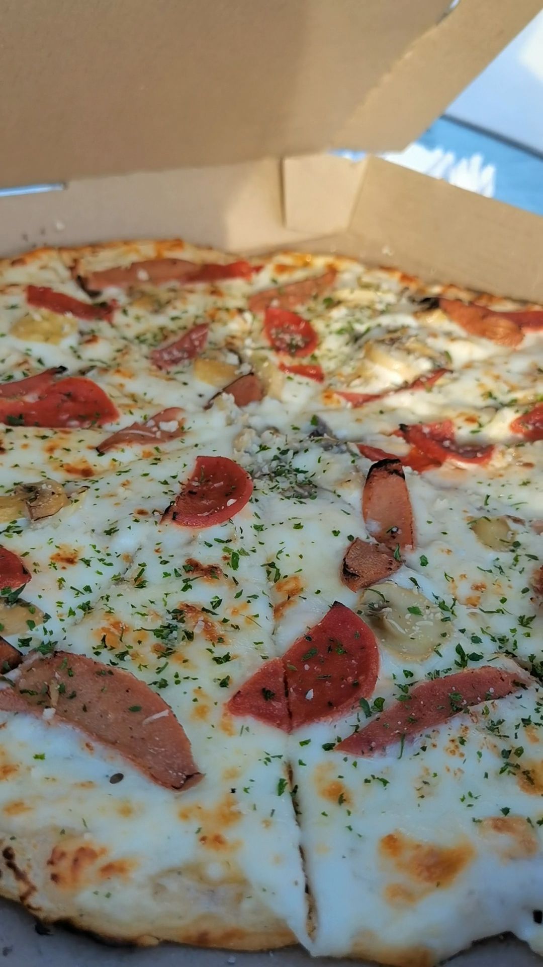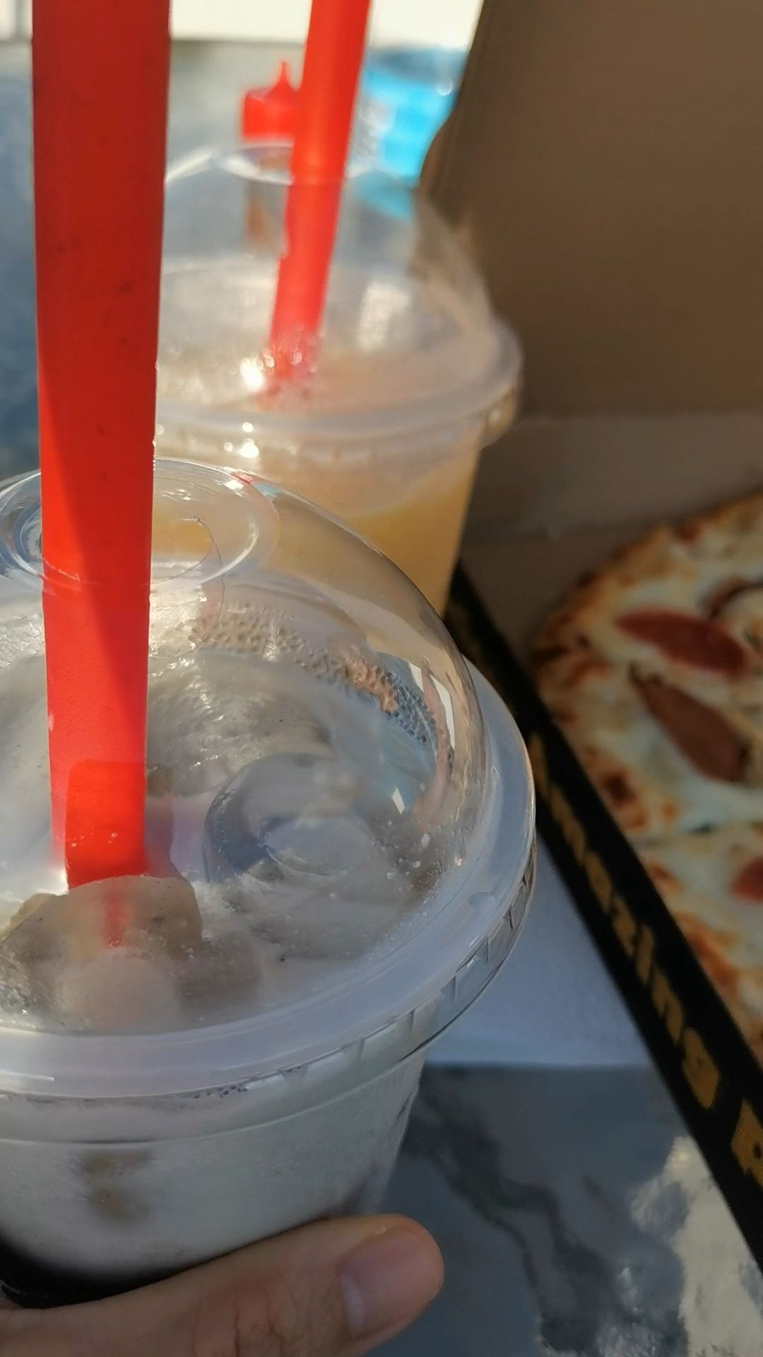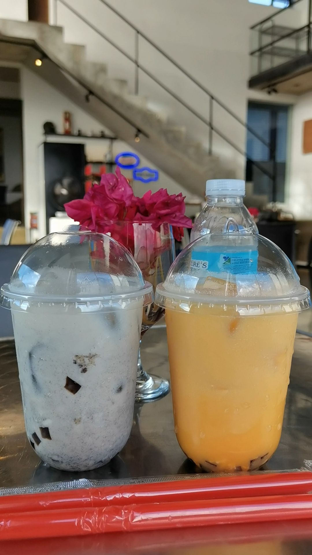 In the afternoon, while waiting for sunset, we shared a pizza. The crust was crisp and thin, the toppings flavorful, and it was just the right snack to keep us company until evening. For drinks, we went with Melon and Cookies & Cream milk tea — both refreshing and perfect to pair with our pizza.