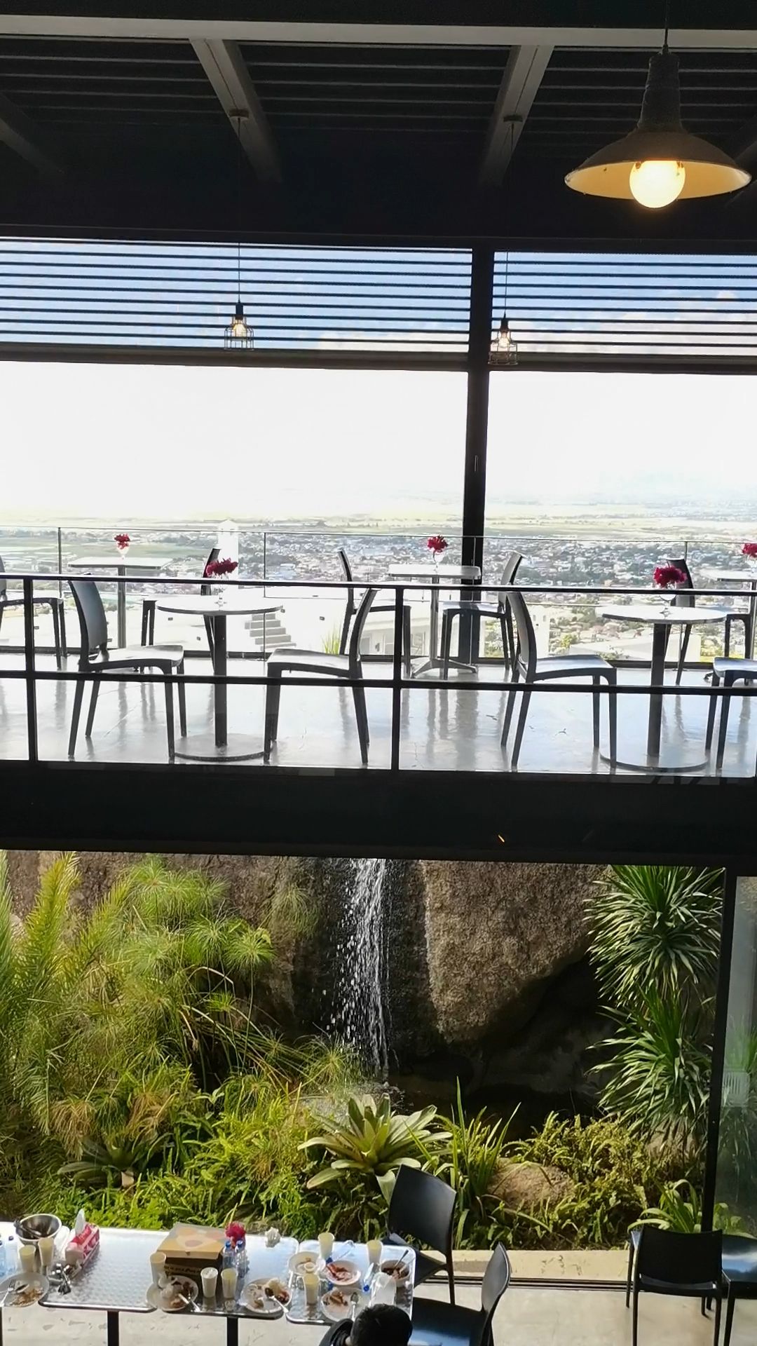 The structure is striking, with white walls and several levels to explore. Each floor has something different to see: indoor dining areas lined with paintings, terraces, and cozy lanai corners. I loved the part where giant rocks were kept as part of the design, with one of them even flowing with a mini waterfall. It made the place feel close to nature, not just another café.