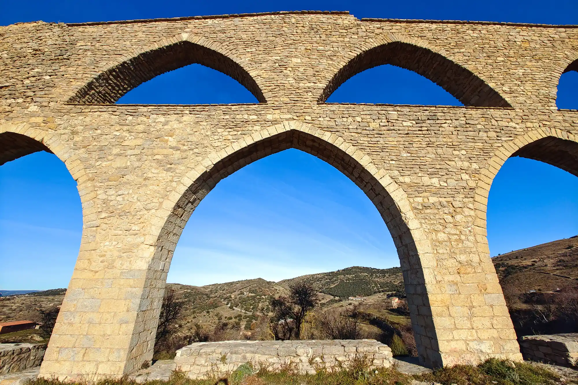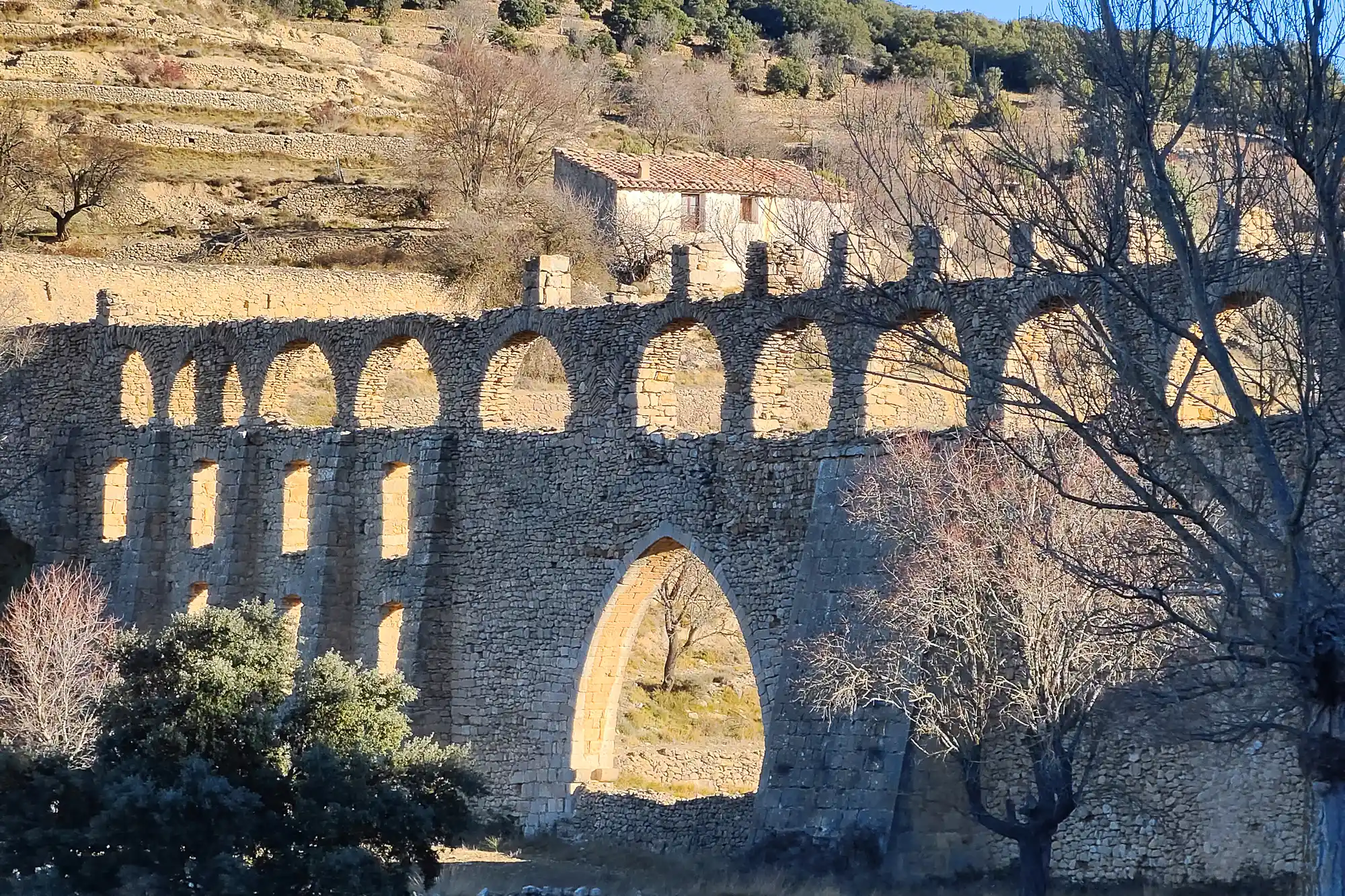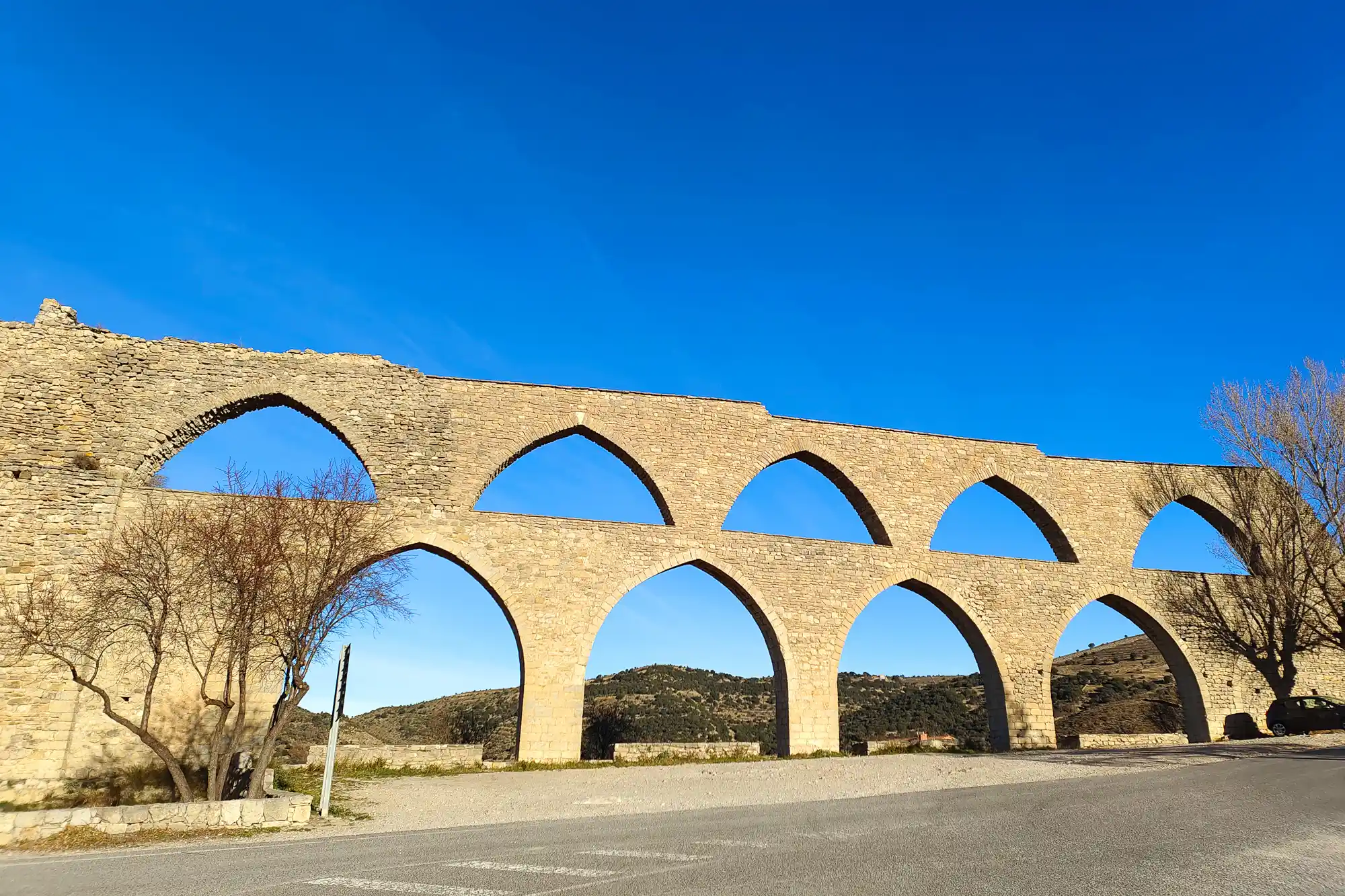 Along the way, we encountered the ruins of two medieval aqueducts, fields of cows, rolling hills, and some unbelievable views back towards Morella. With the fresh, countryside air filling our lungs, we couldn’t have been in better moods.