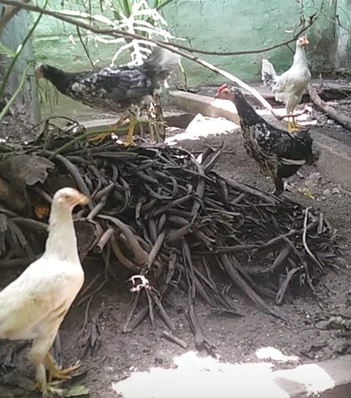 > After we bought these animals from their previous owner, there were a total of 8 chicks and 9 hens left. But while we were arranging the space that would be used for them to be comfortable and calm, with plenty of room for them to walk around without problems, one of the hens was stolen with 2 chicks.
