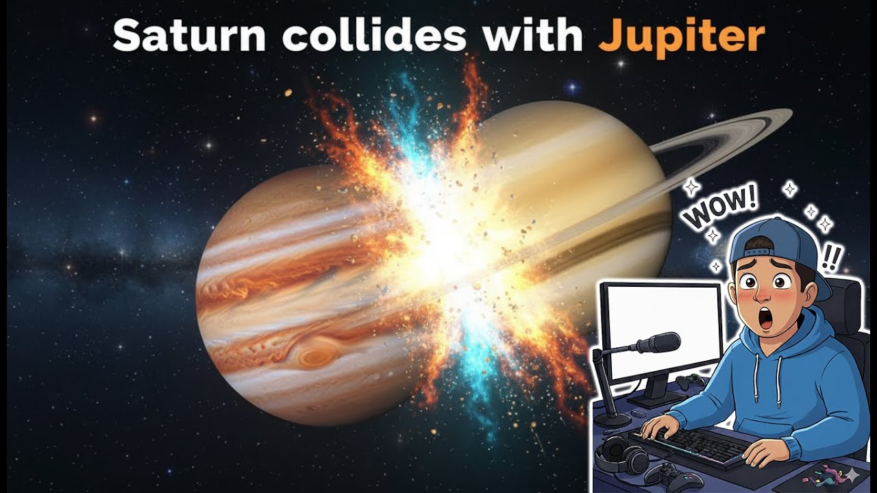 First of all, I saw my son colliding planets, then suns, and even black holes too. So I asked him to collide the two giants in our solar system — Jupiter and Saturn. I also told him to create a short video, because most people on YouTube like to watch videos between 5 to 10 minutes in this category.
