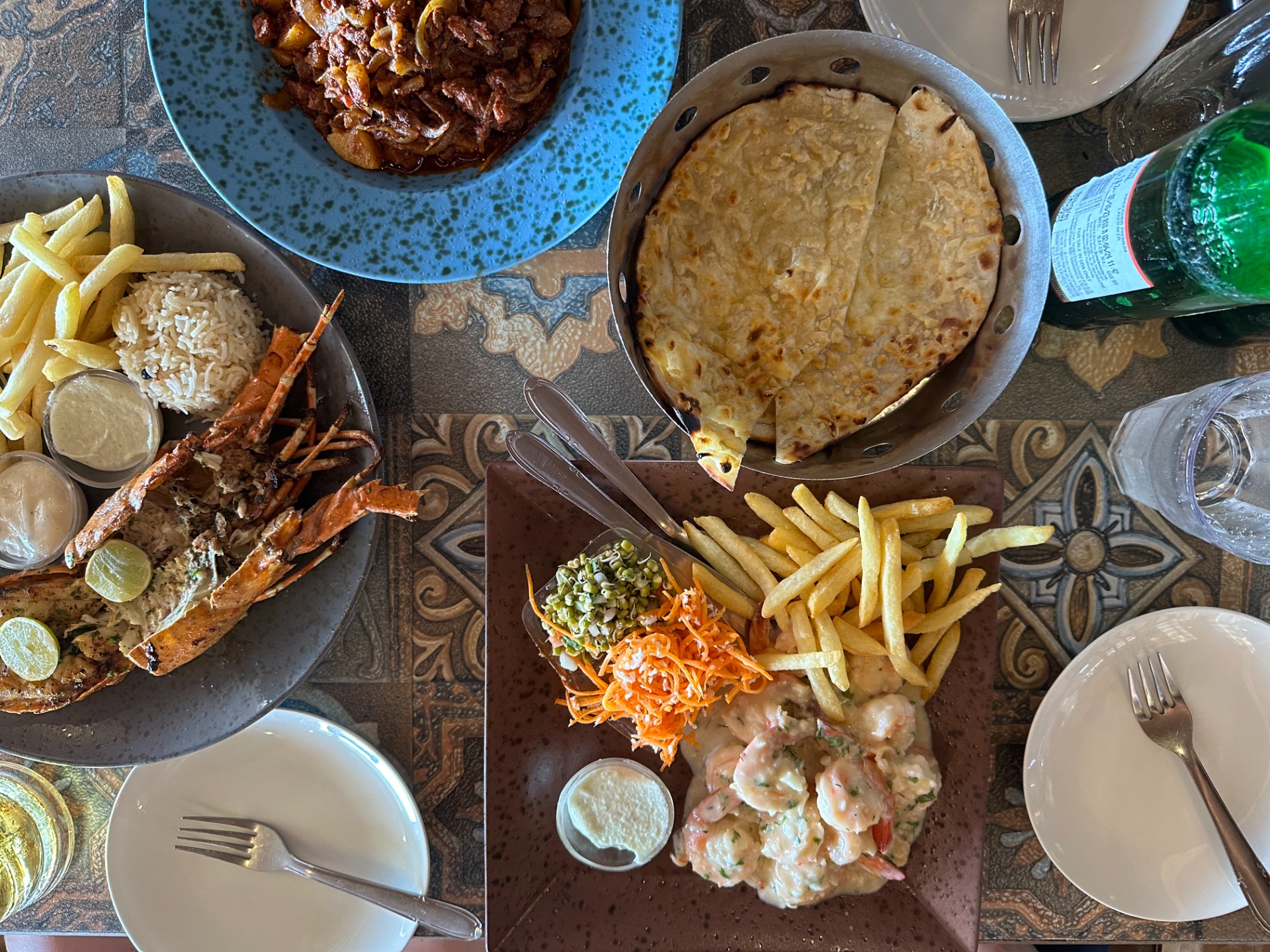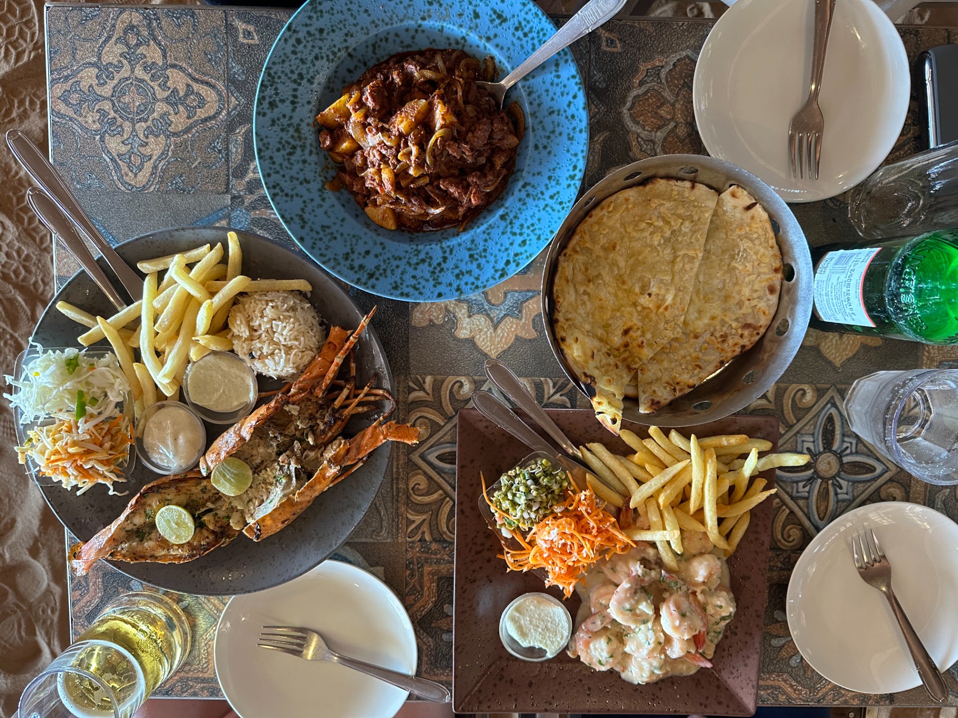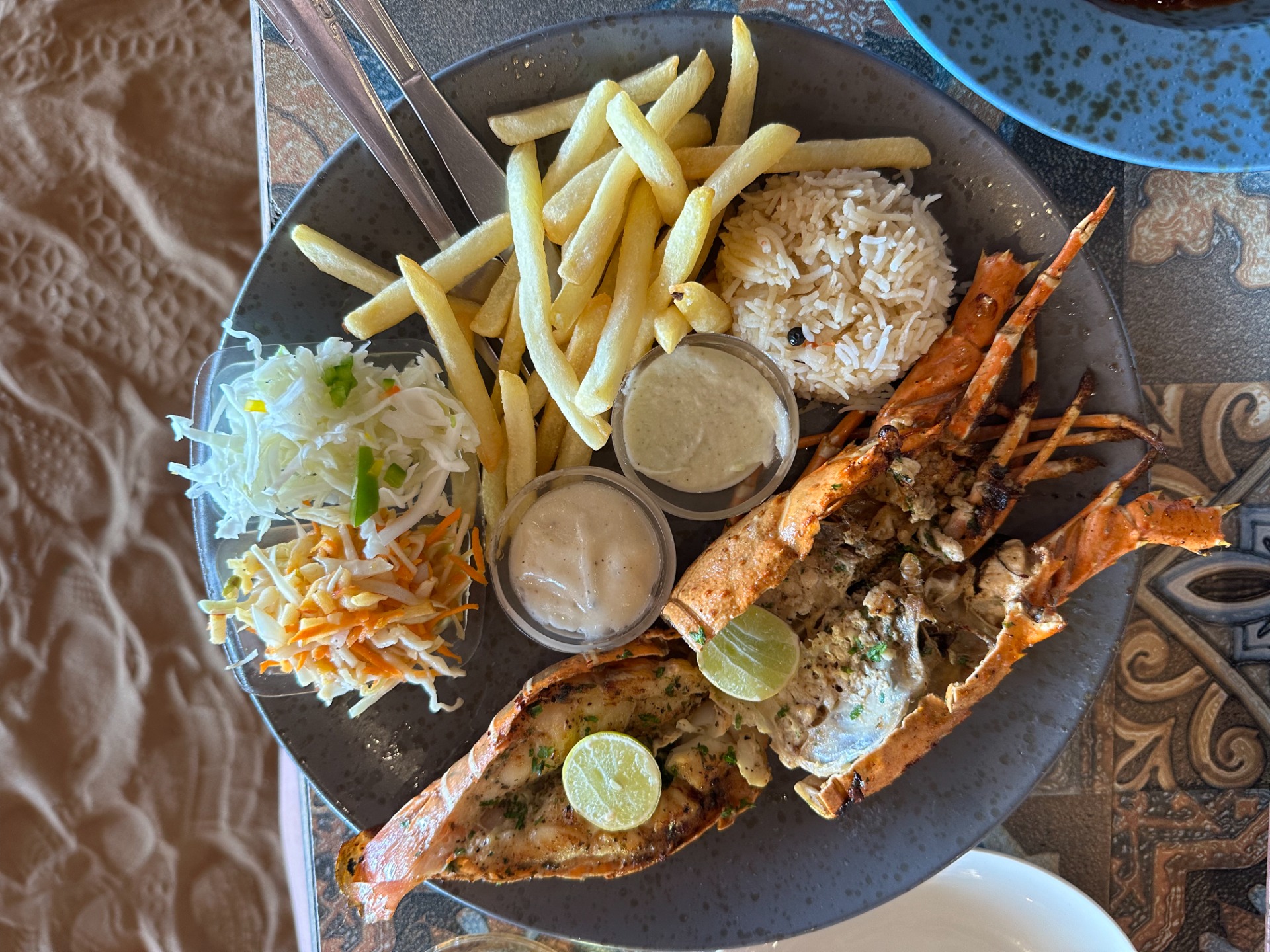 The food alone deserves a trip. From buttery parathas to creamy prawn curry, every meal felt like a small celebration. One of my favorite meals came with a view of the ocean breeze and a plate full of grilled lobster, rice, and fries — simple, fresh, and perfect. Goa doesn’t try too hard with its food; it lets the ingredients do the talking. You can spend hours in a beach shack or a fine-dining restaurant and still feel the same warmth.