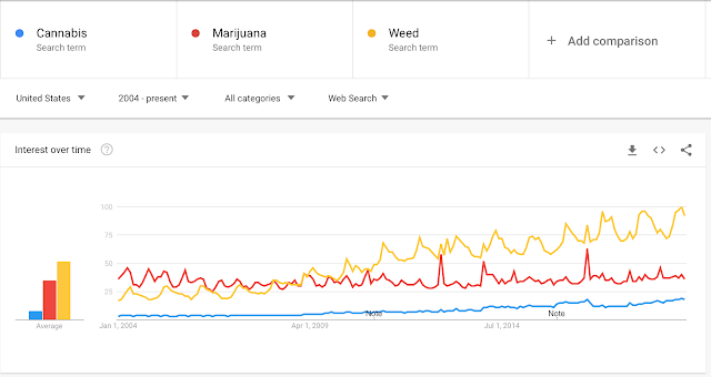 It's plain as day, "WEED" is in the lead and that's OK. I'm only a parent to 2 kids, so as far as the rest of you go - I'm not your Dad! Say whatever words you like, but just think about what I have shared and do what makes you feel best. If you still want to call it "dope", knock your socks off. I think cannabis is my preferred word, but that's just my 2 nugs worth.