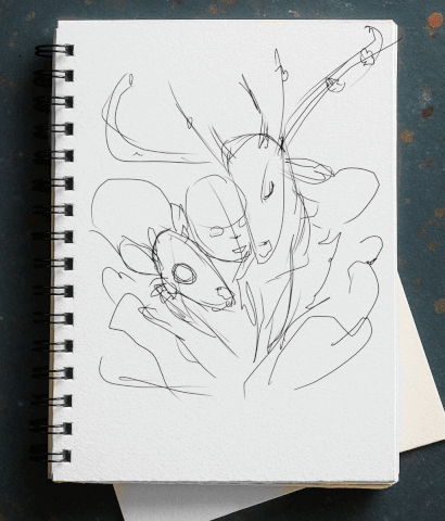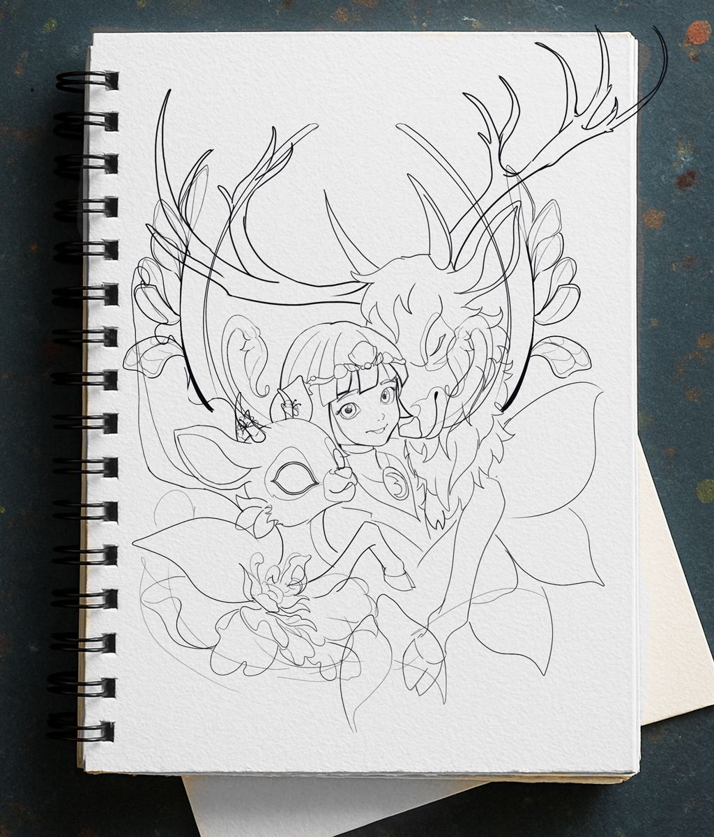 I had to separate all the characters and the herbs into different layers to work on them comfortably. This time, the result didnât have a strong inked style, but the lines turned out pretty clean. Since I was short on time, I shaded the way I usually do: using the airbrush and then smoothing everything out with the smudge tool. I also tried to improve the rendering by painting over lines that looked off and areas that appeared too flat. I wanted to add more highlights to the healerâs face, but it turned out her face was already too bright, and I didnât want to darken it further. So, no little sparkles on her cheeks this time.