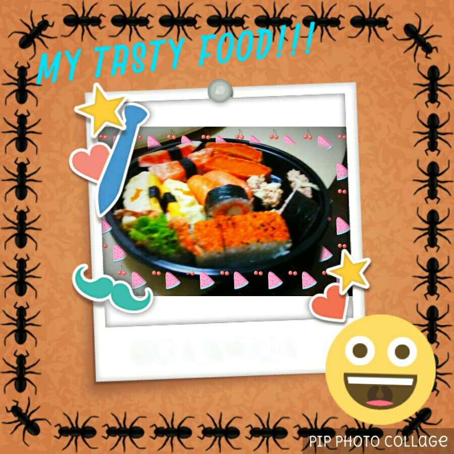 Today, I eat sushi at dinner. My sisters like to eat sushi. The photos are down there. 今天,我在晚餐吃寿司。我的妹妹很喜欢吃寿司。以下的照片是我今天吃的晚餐。