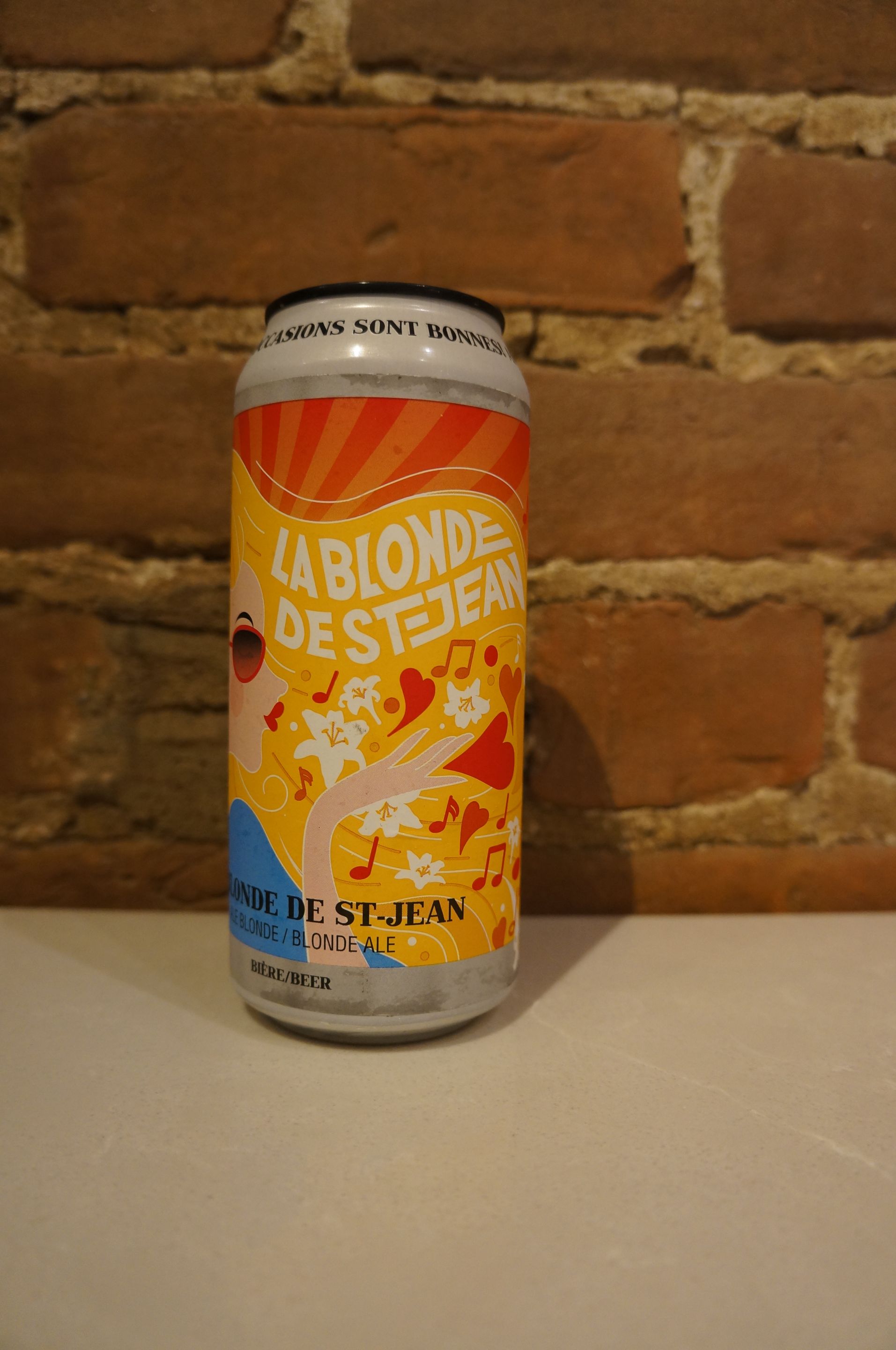 La Blonde de St-Jean est une blonde avec 5% d'alcool brassée spécialement pour la SAQ (la société d'état qui gère la vente d'alcool au Québec). Dans le verre, on retrouve une couleur jaune orangée, très claire. Elle est surmonté par une mousse blanche très effervescente qui disparait rapidement. En bouche, il s'agit d'une blonde assez maltée, avec des notes de céréales légèrement fruitées avec une amertume modérée. En gros, une bière est sans surprise mais bonne et rafraichissante.