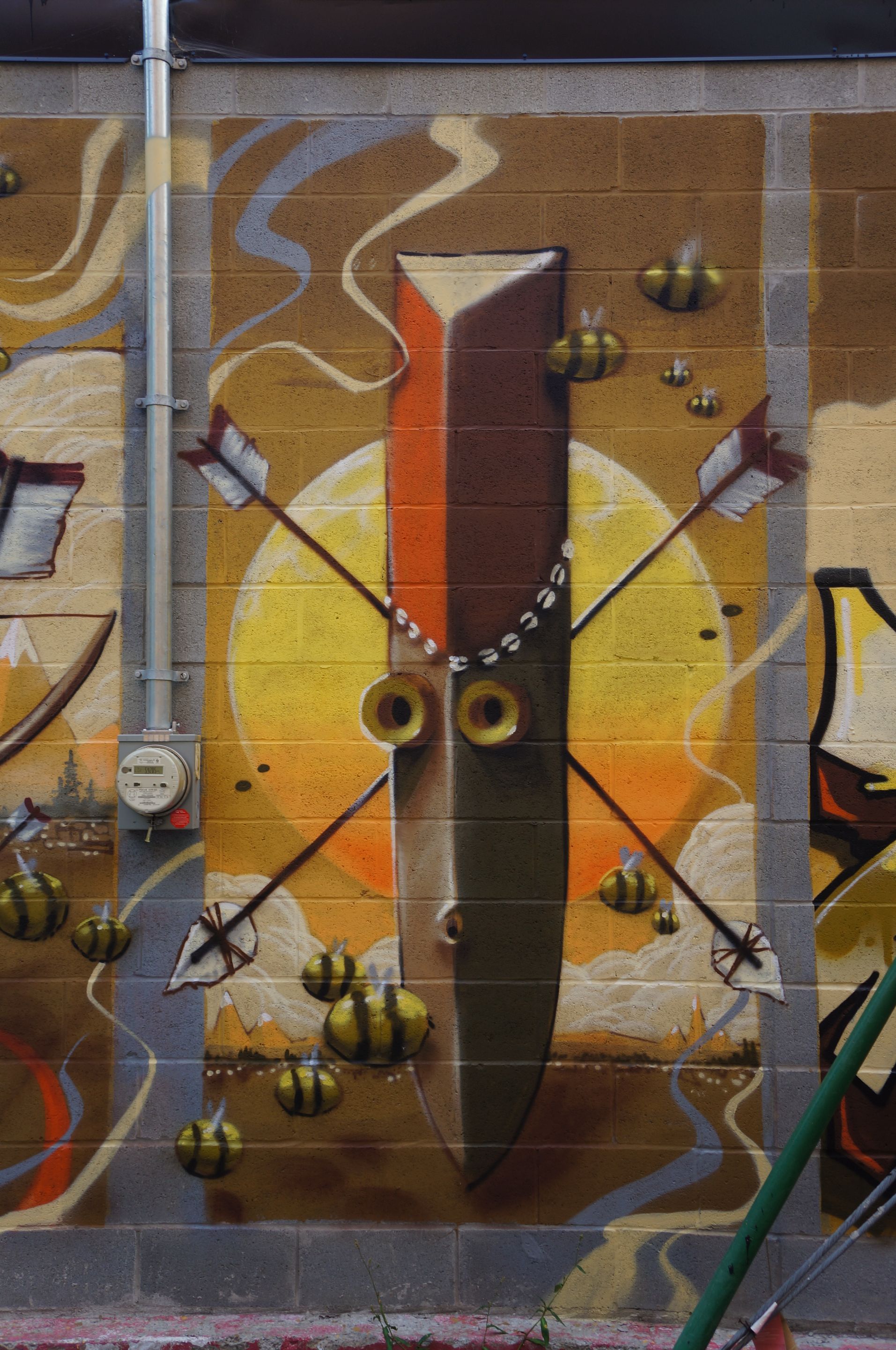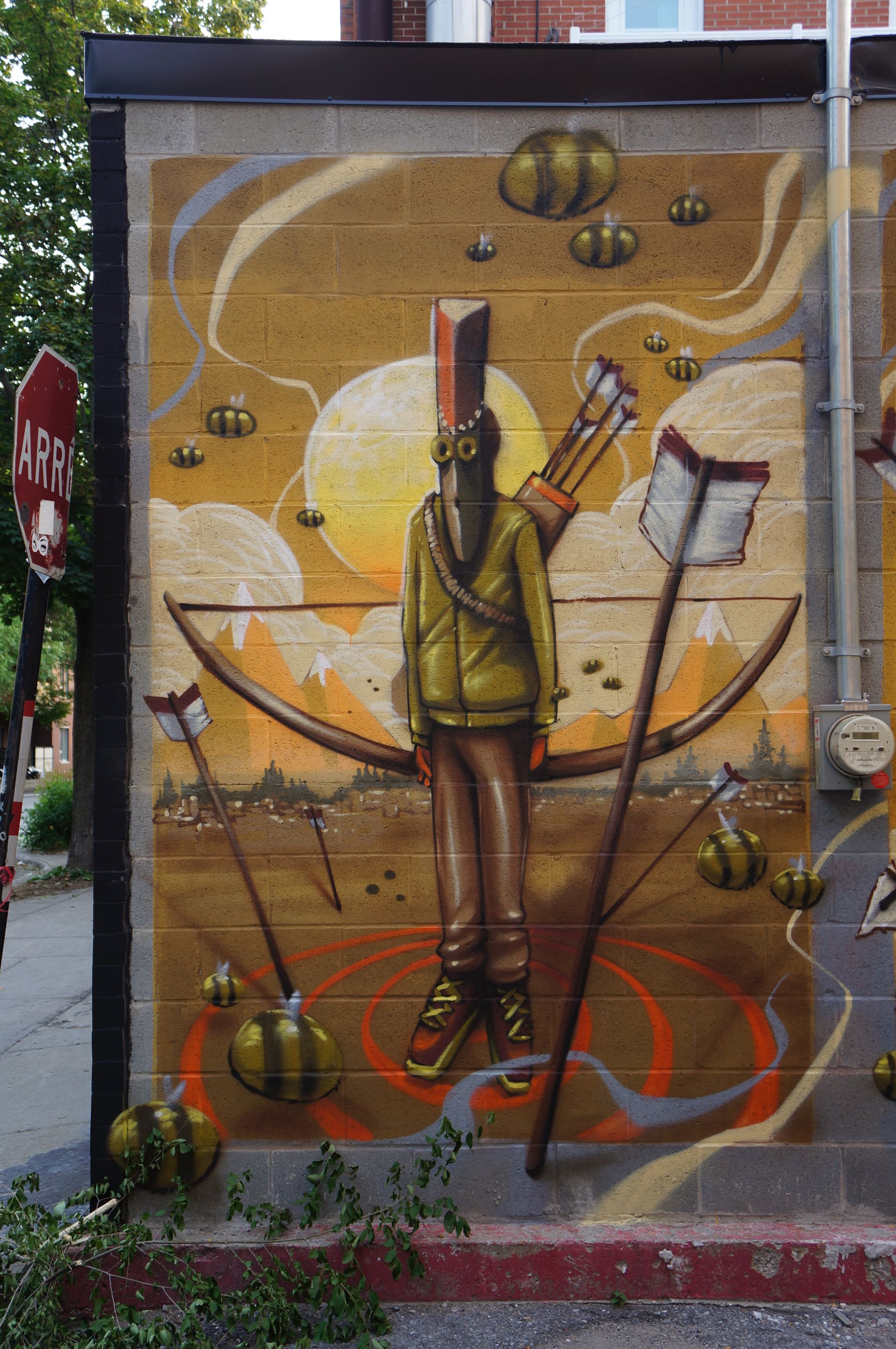 J'aime beaucoup le personnage avec son arc en plein milieu d'une cible. Monk.E sur son compte instagram, l'a décrit comme Being the target (être la cible). Et les abeilles bien enrobées 😀 sont aussi bien sympathique. Encore une réussite de cet artiste. Qu'en pensez-vous ?**