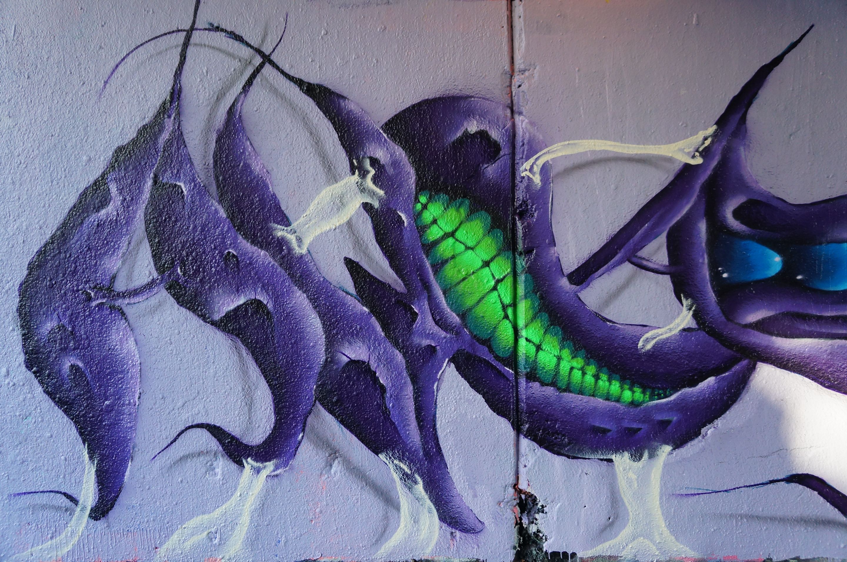 Je vais essayer de rattraper mon retard pour présenter les différentes oeuvres qui ont été peintes au Mur Légal de Rouen cet été. C'est souvent lors de ma balade en vélo le matin en allant au travail le mardi que je les découvre. Généralement les artistes ont profité du weekend pour peindre tranquillement sous ce viaduc. Et les oeuvres sont généralement encore "intactes" le mardi, avant qu'une autre couche de graffiti ne vienne les effacer. C'est un changement perpétuel.