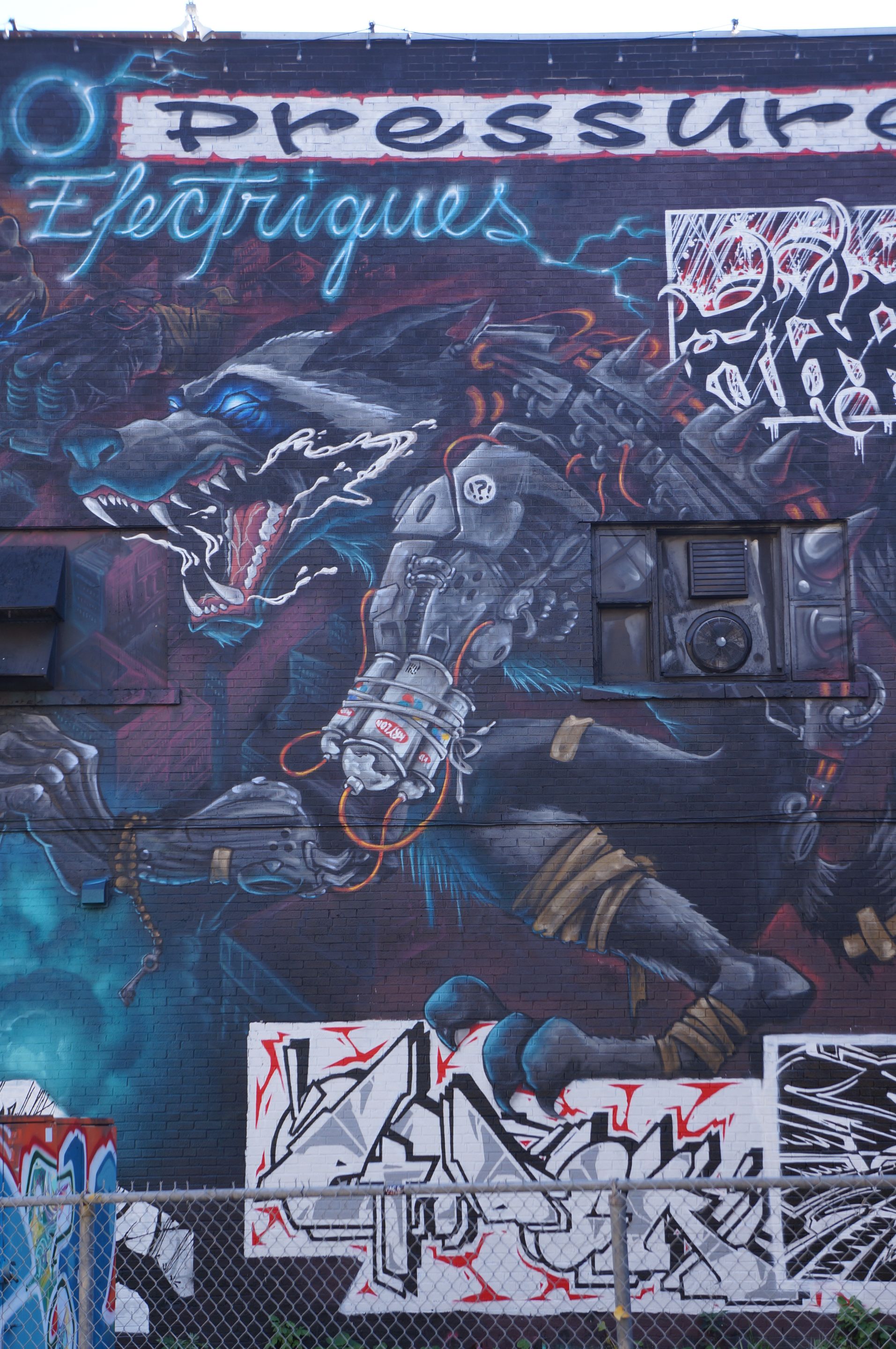 This wall is located at the corner of Bullion Street and Boisbriand Street in downtown Montreal. It is the main area of the StreetArt Under Pressure festival, which usually features a stage where several bands perform and dance battles take place.